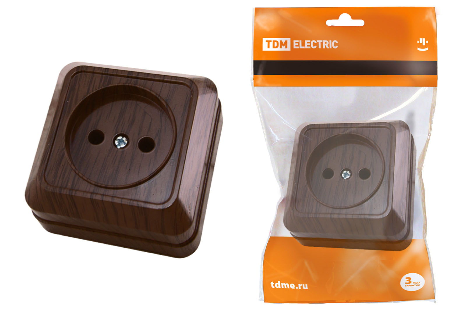 Наименование: Розетка 2П открытой установки IP20 10А 250В (керамика) бук "Ладога" TDM