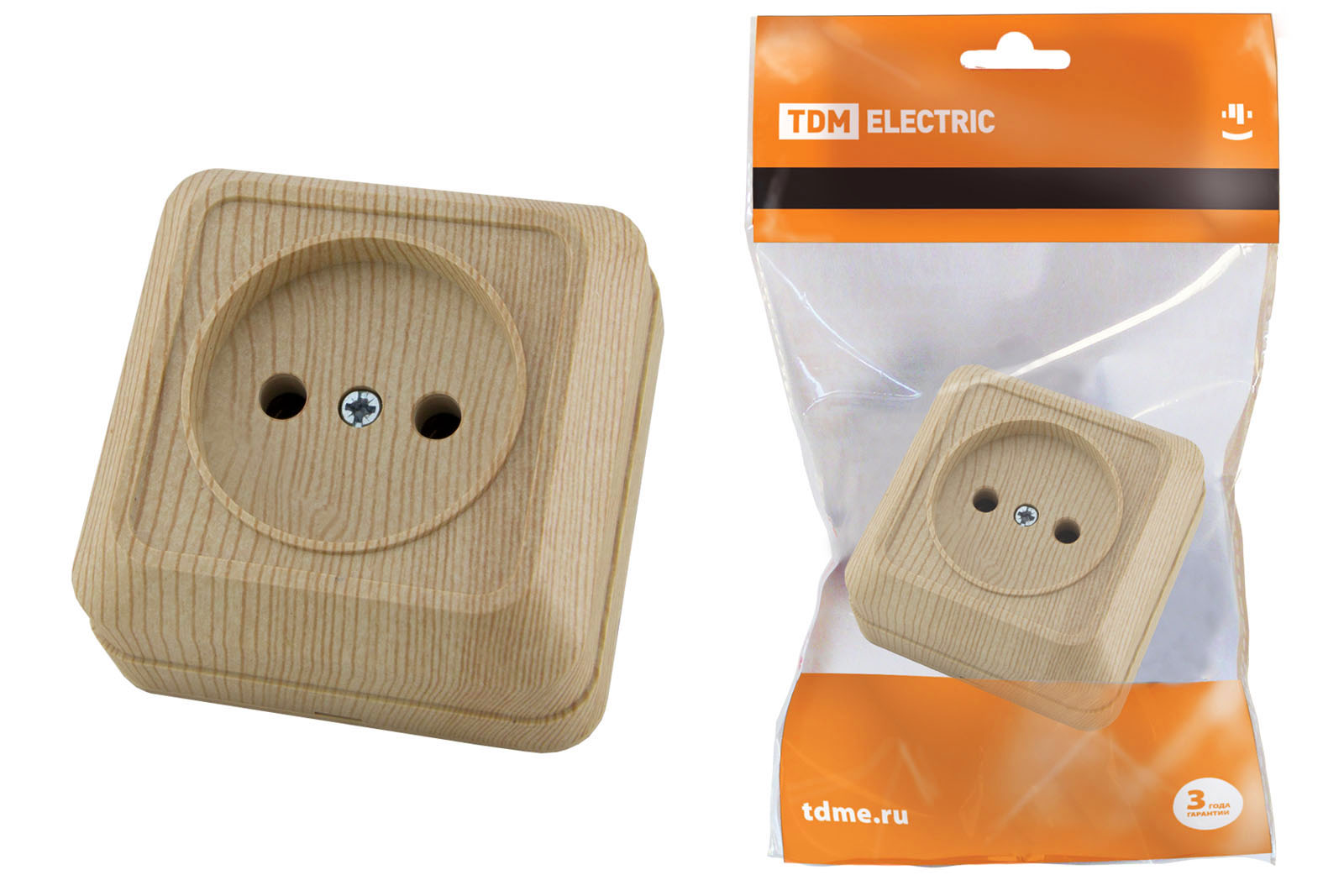Розетка 2П открытой установки IP20 10А, сосна "Ладога" TDM
