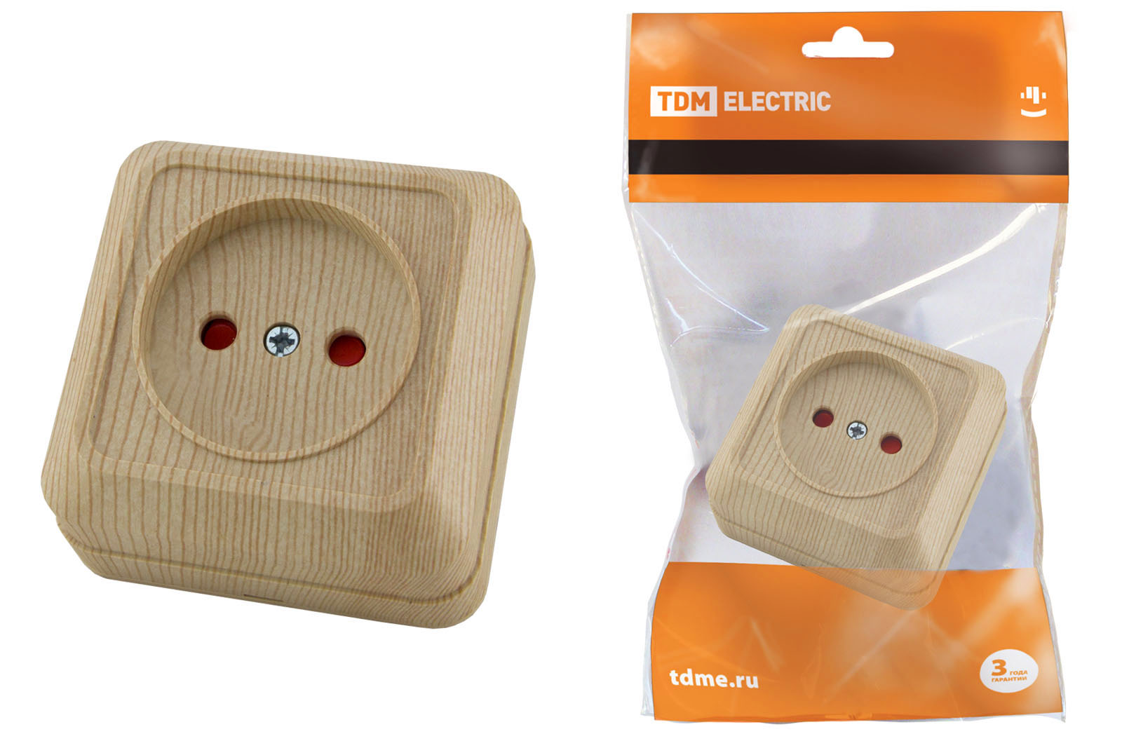 Наименование: Розетка 2П открытой установки с з/ш IP20 10А, сосна "Ладога" TDM