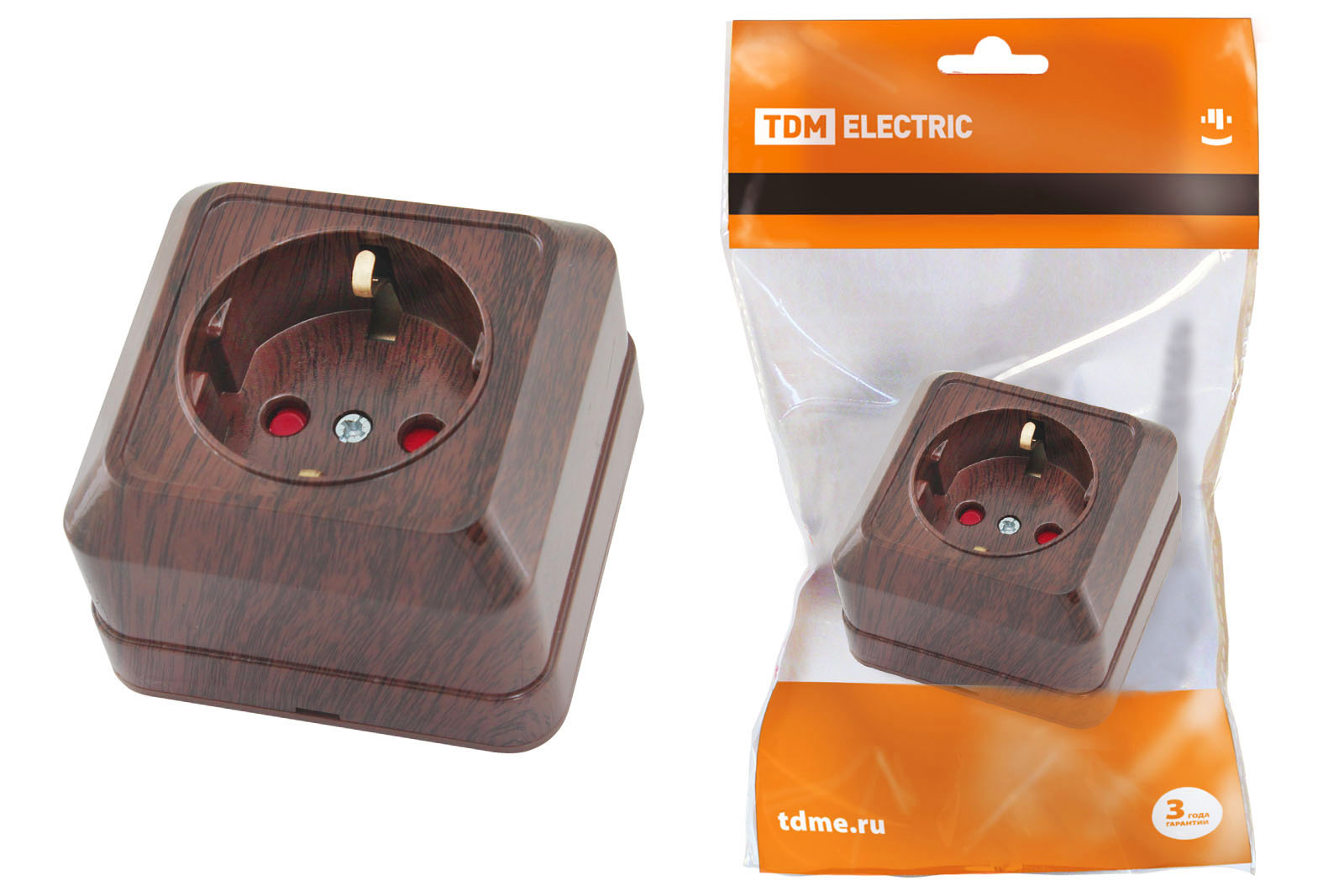 Наименование: Розетка 2П+З открытой установки с з/ш IP20 16А, бук "Ладога" TDM