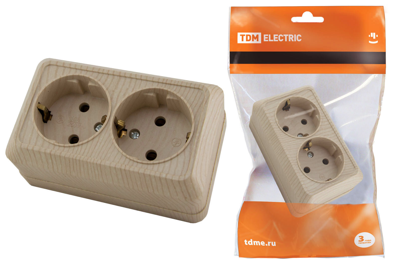 Наименование: Розетка двойная 2П+З открытой установки IP20 16А, сосна "Ладога" TDM