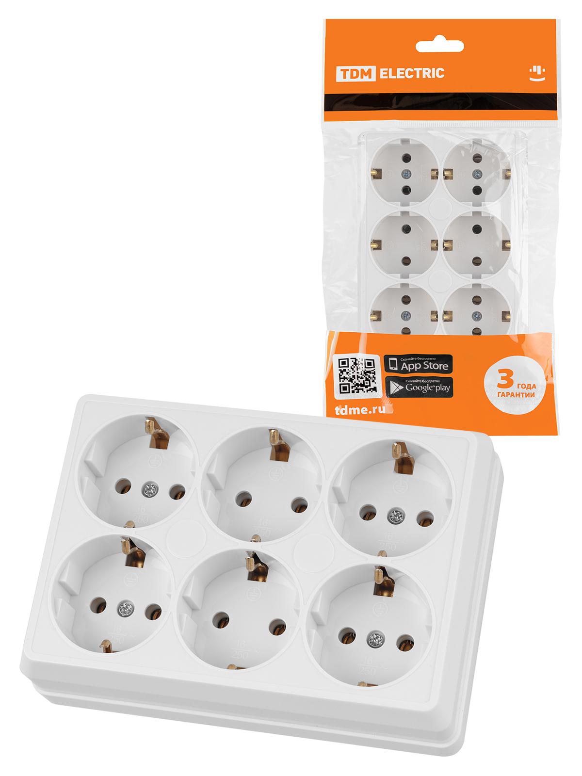 Наименование: Розетка шестиместная 2П+3 открытой установки IP20 16A белая "Ладога" TDM