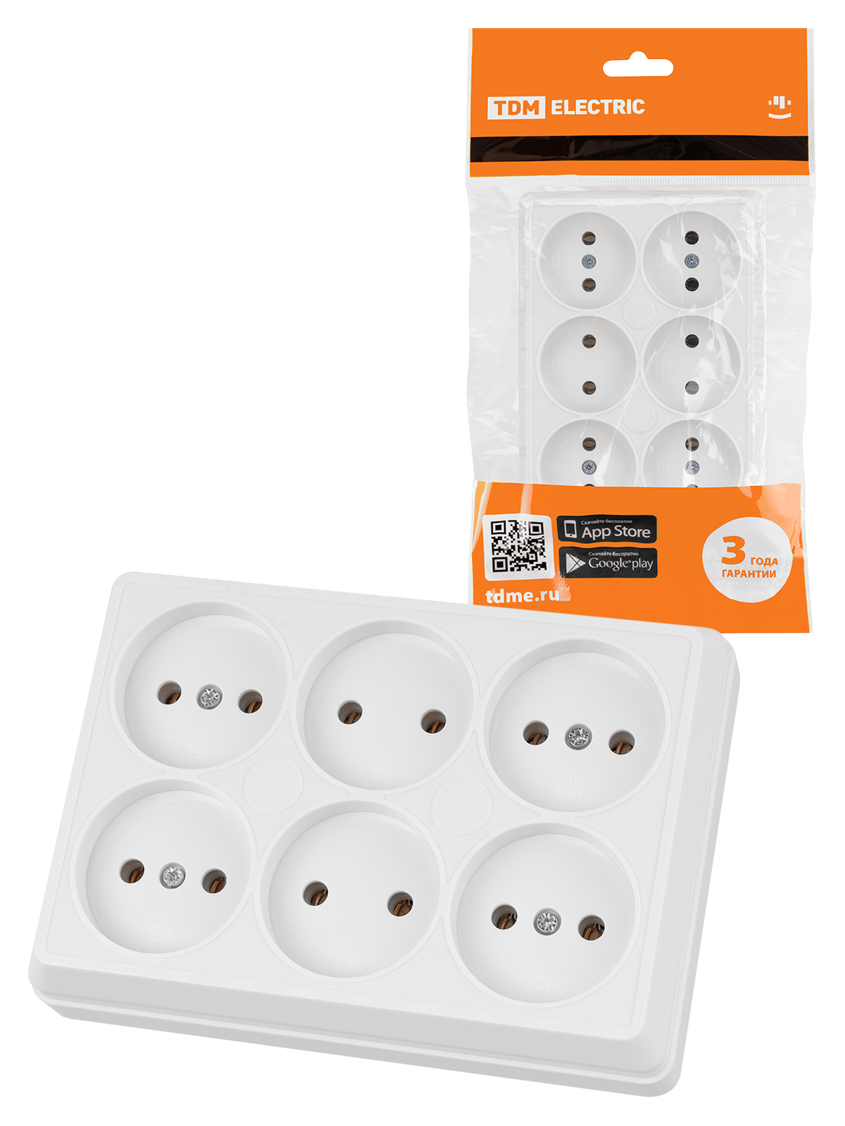 Наименование: Розетка шестиместная 2П открытой установки IP20 10A белая "Ладога" TDM