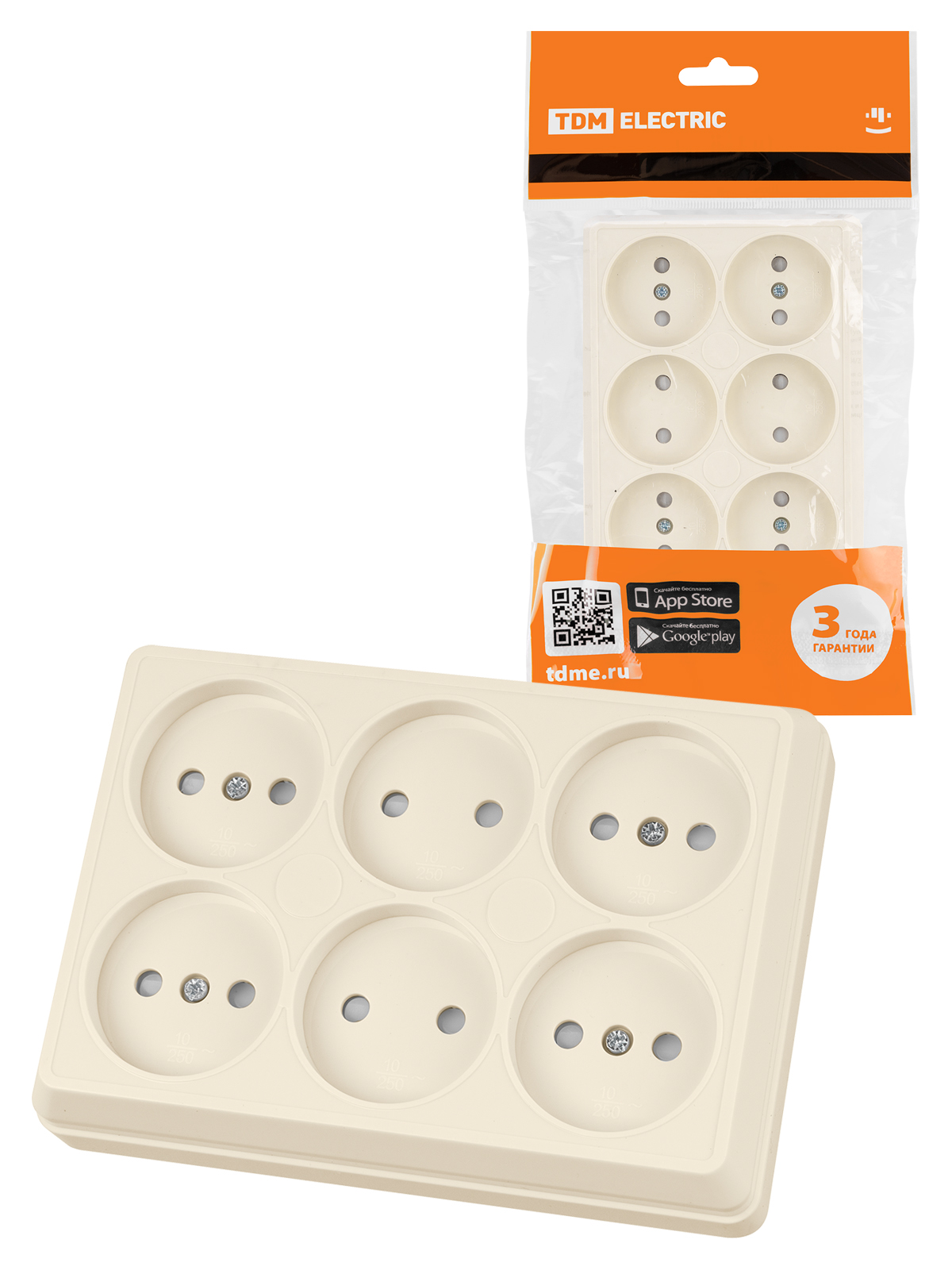 Наименование: Розетка шестиместная 2П открытой установки IP20 10А с защитными шторками сл. кость "Ладога" TDM