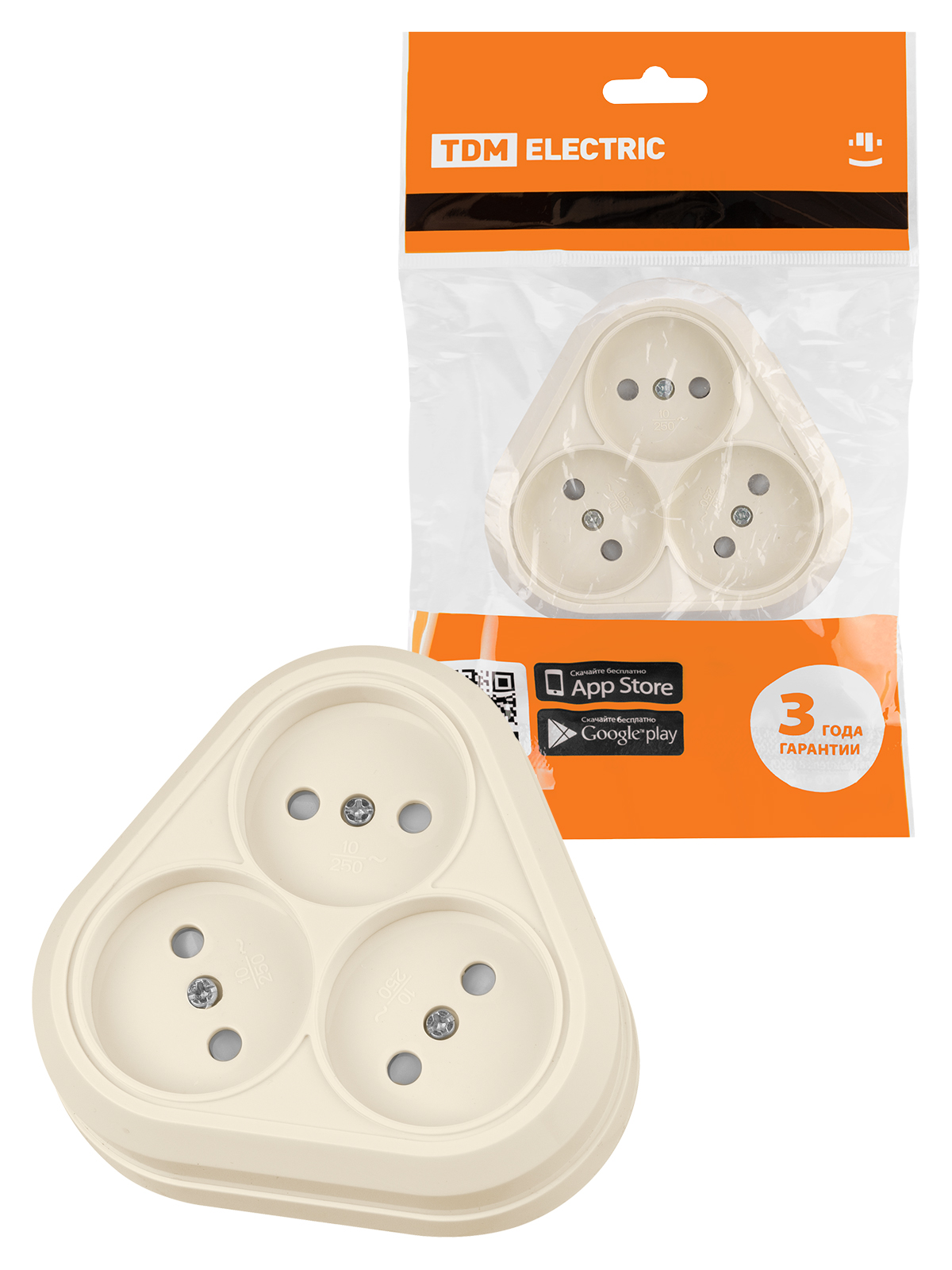 Наименование: Розетка треугольная 2П открытой установки IP20 10А с защитными шторками сл. кость "Ладога" TDM