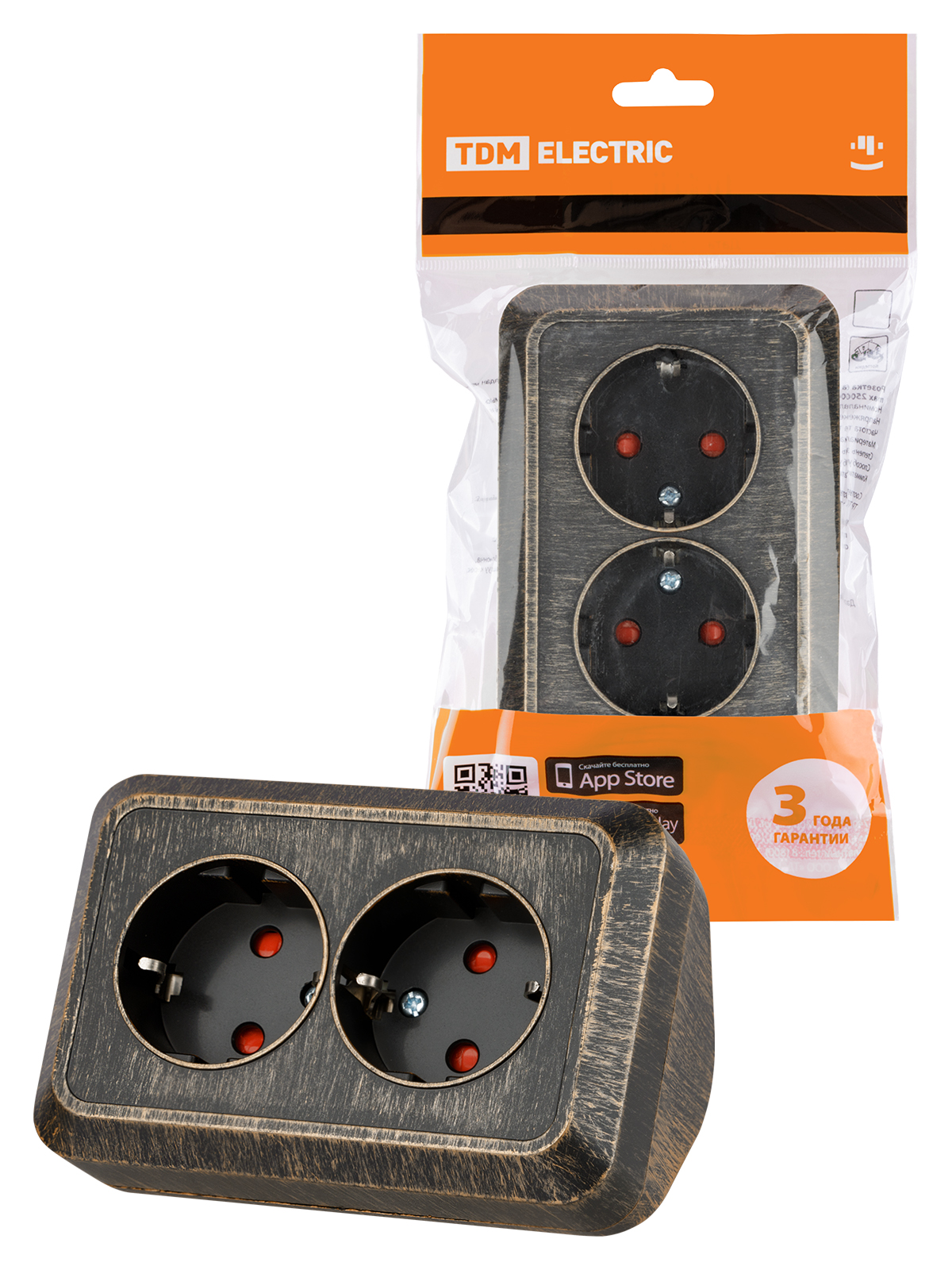 Наименование: Розетка угловая двойная 2П+3 открытой установки с з/ш IP20 250В 16А бронза "Ладога" TDM