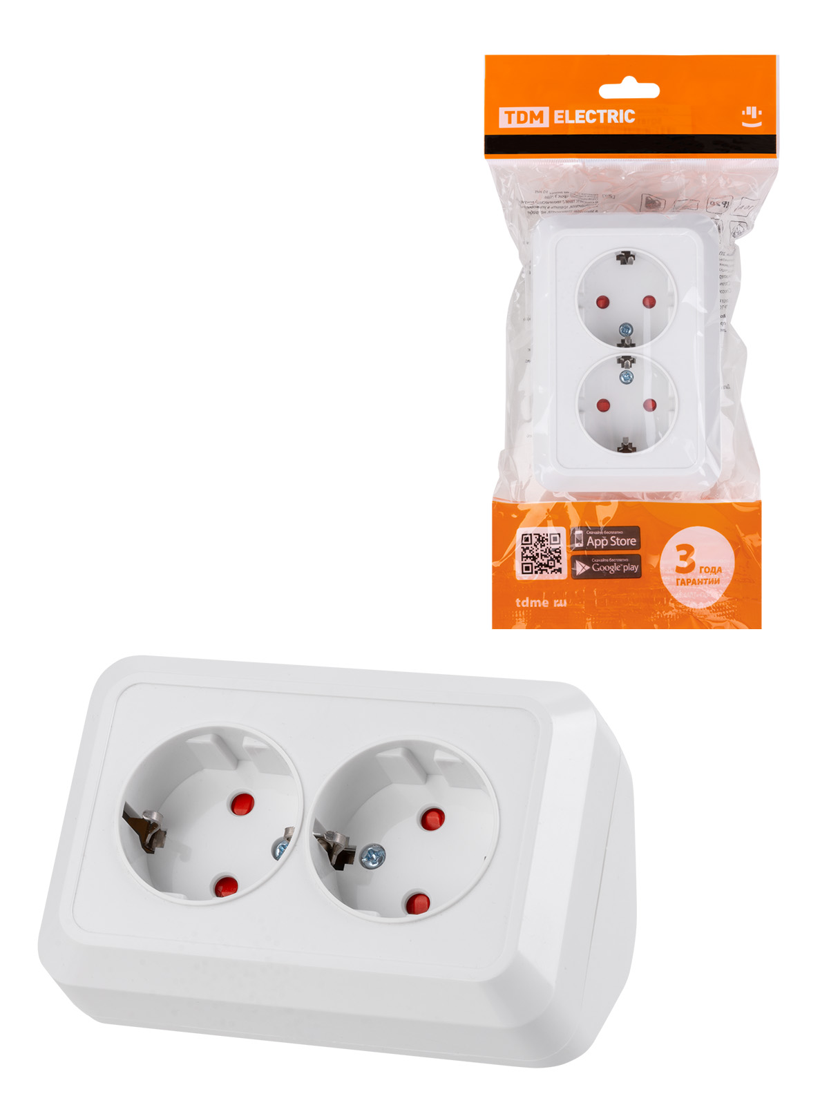 Наименование: Розетка угловая двойная 2П+З открытой установки с з/ш IP20 250В 16А белая "Ладога" TDM