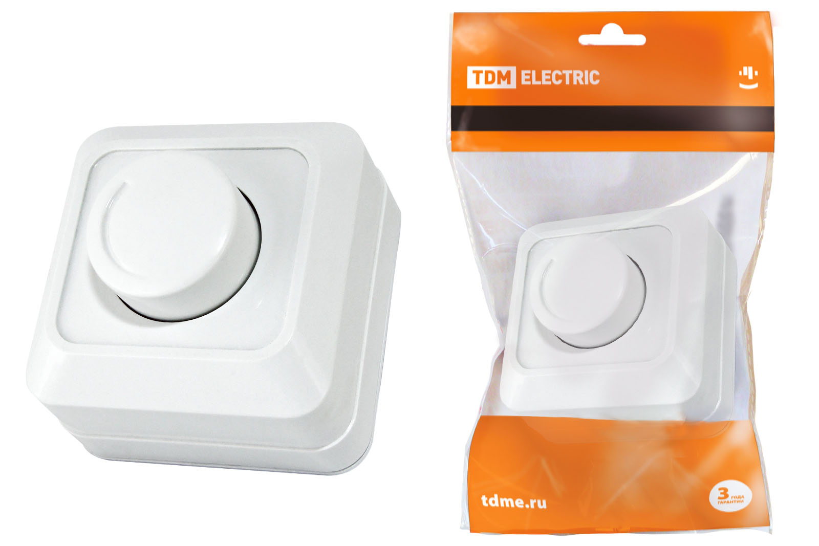 Наименование: Светорегулятор поворотный RL 300 Вт IP20 белый "Ладога" TDM