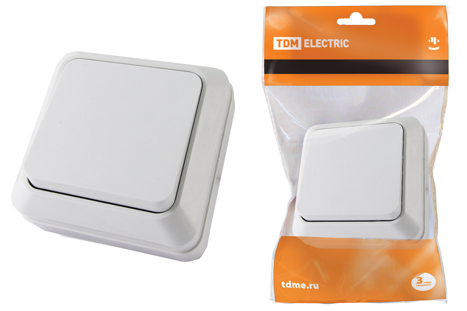 Наименование: Выключатель 1-кл. открытой установки IP20 10А, белый "Ладога" TDM