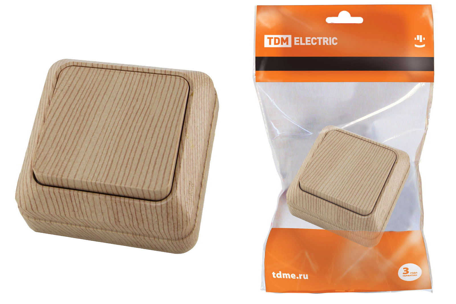 Наименование: Выключатель 1-кл. открытой установки IP20 10А, сосна "Ладога" TDM