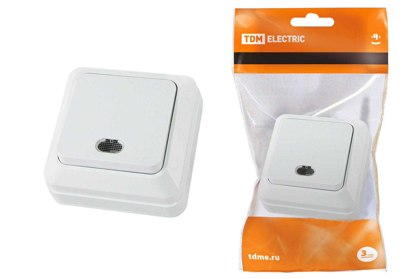Выключатель 1-кл. открытой установки с подсветкой IP20 10А, белый "Ладога" TDM