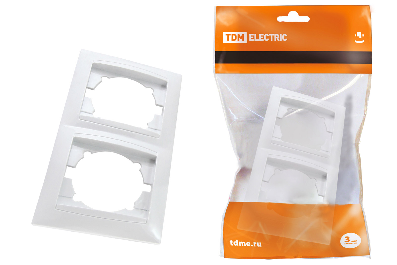 Наименование: Рамка 2-х постовая горизонтальная белая "Лама" TDM