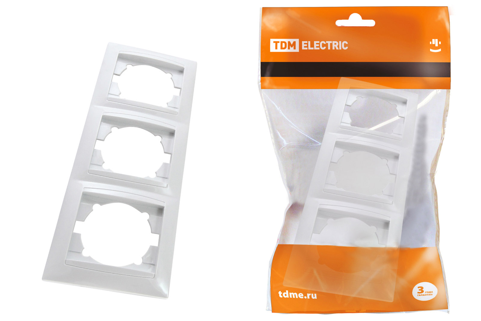 Наименование: Рамка 3-х постовая вертикальная белая "Лама" TDM
