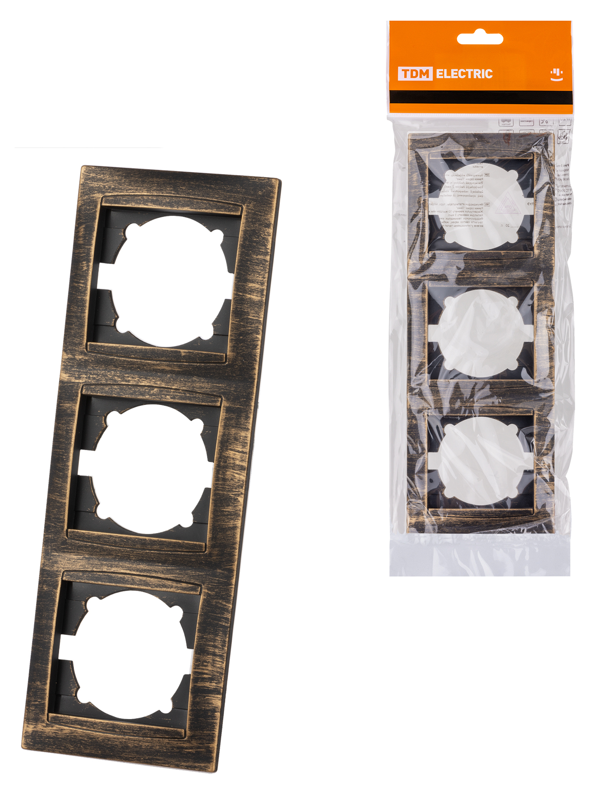 Наименование: Рамка 3-х постовая вертикальная старинная бронза "Лама" TDM