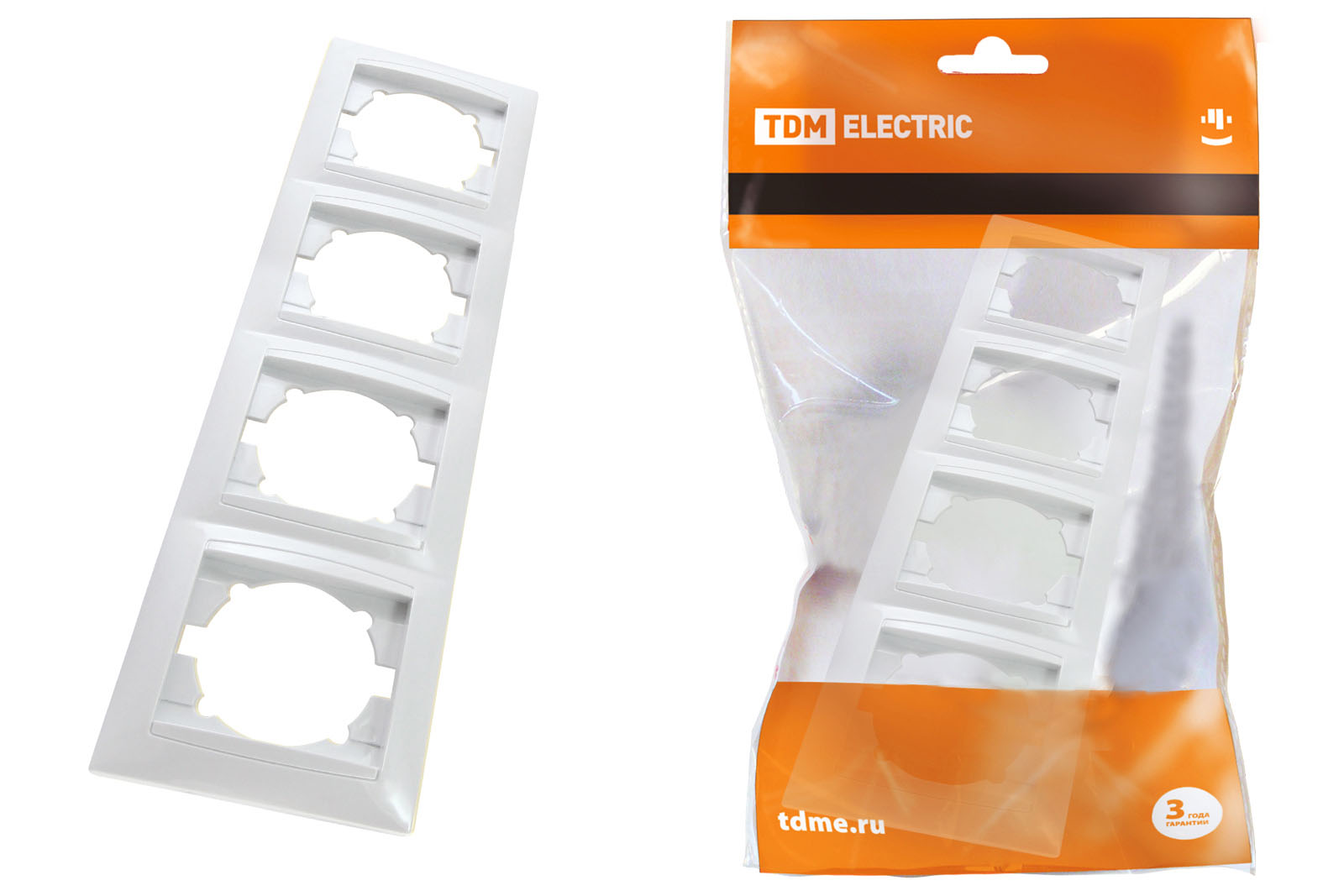 Наименование: Рамка 4-х постовая вертикальная белая "Лама" TDM