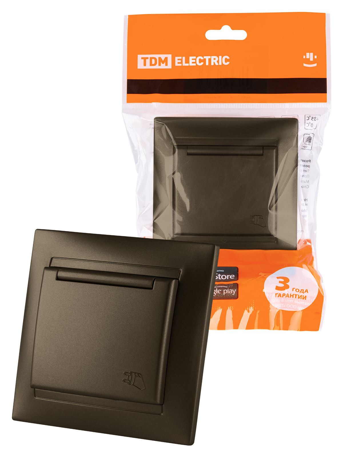 Наименование: Розетка 2П+З 16А 250В  IP44 с крышкой бронза "Лама" TDM