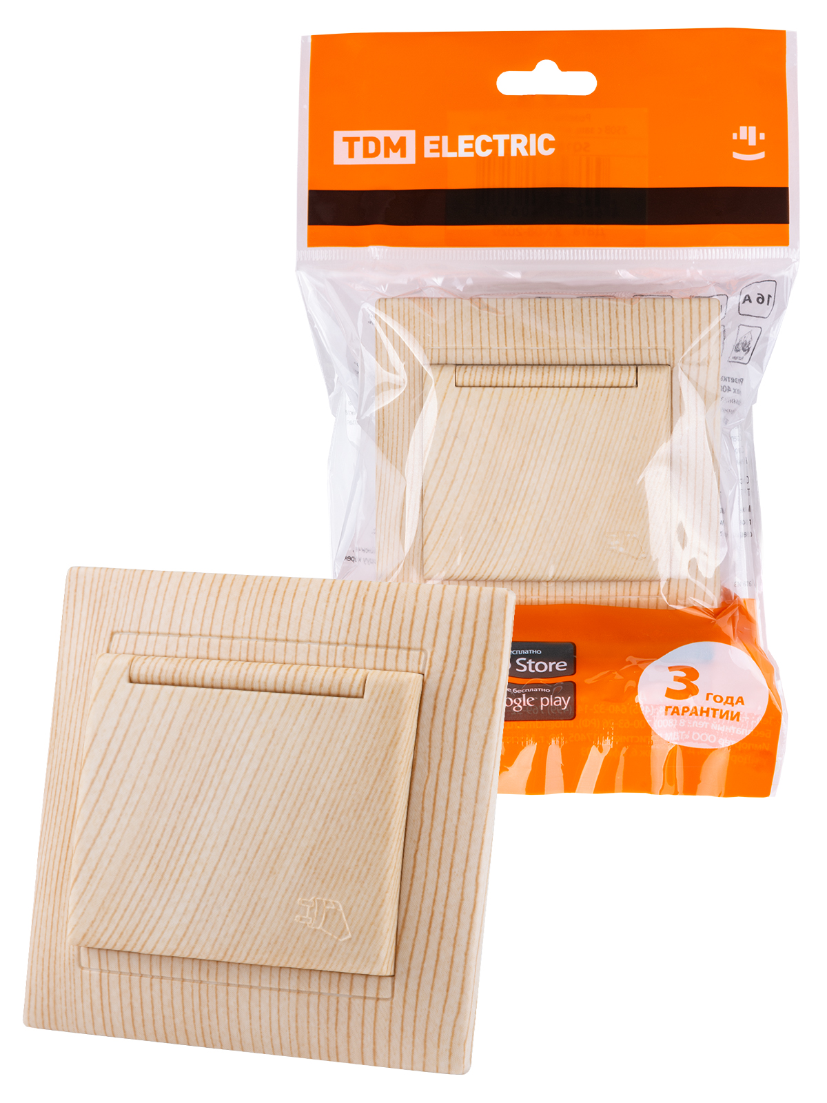 Наименование: Розетка 2П+З 16А 250В IP44 с крышкой сосна "Лама" TDM