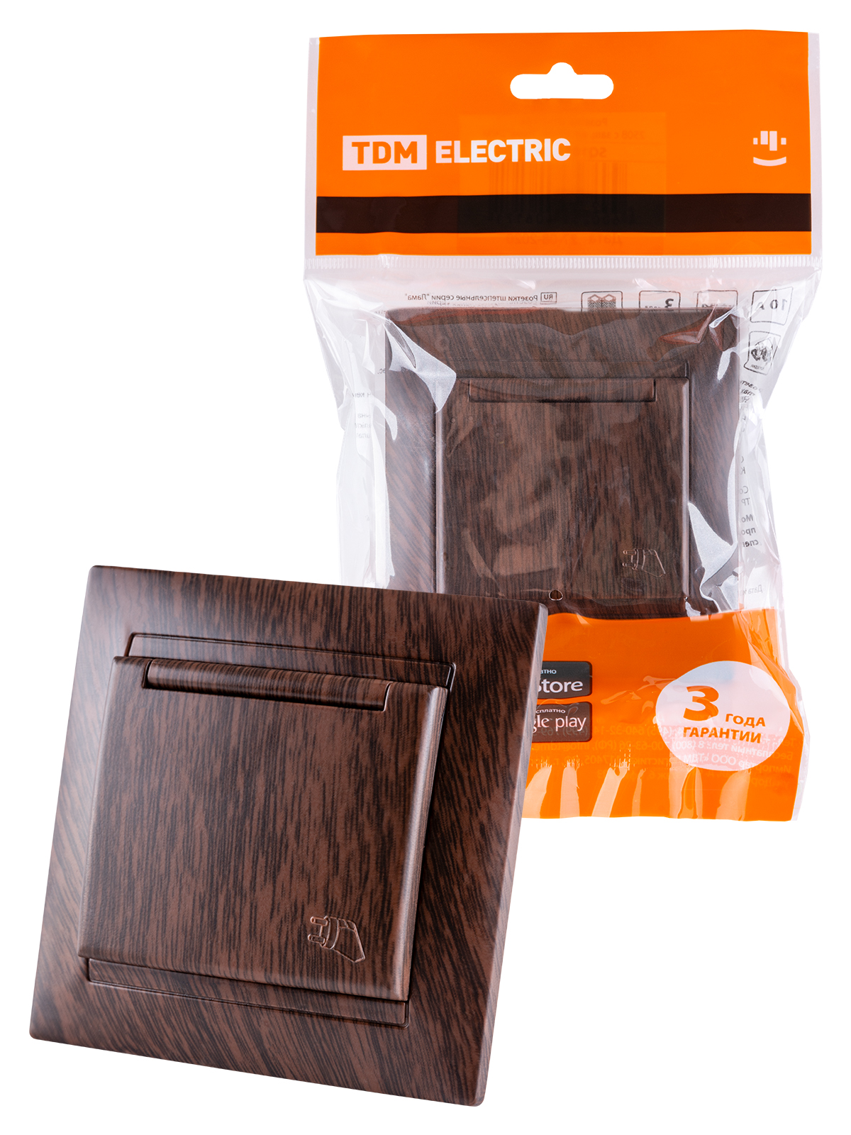 Наименование: Розетка 2П+З 16А 250В IP44 с крышкой венге "Лама" TDM