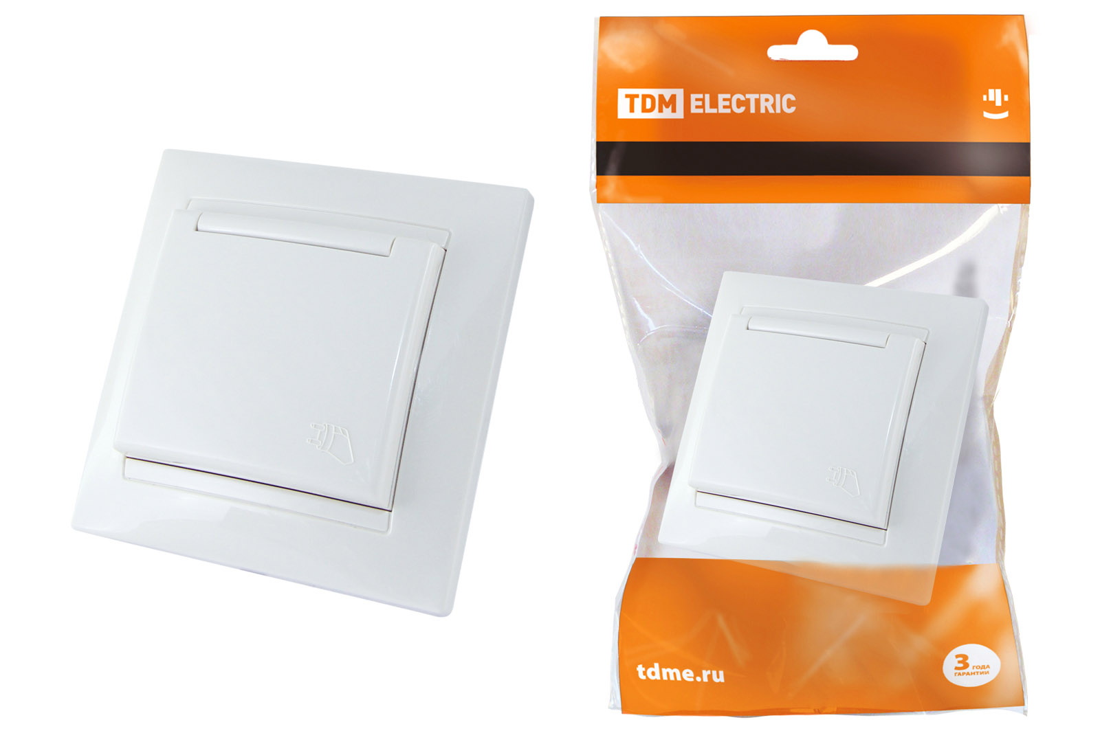 Наименование: Розетка 2П+З 16А 250В IP44 с защ. шт. с крышкой белая "Лама" TDM