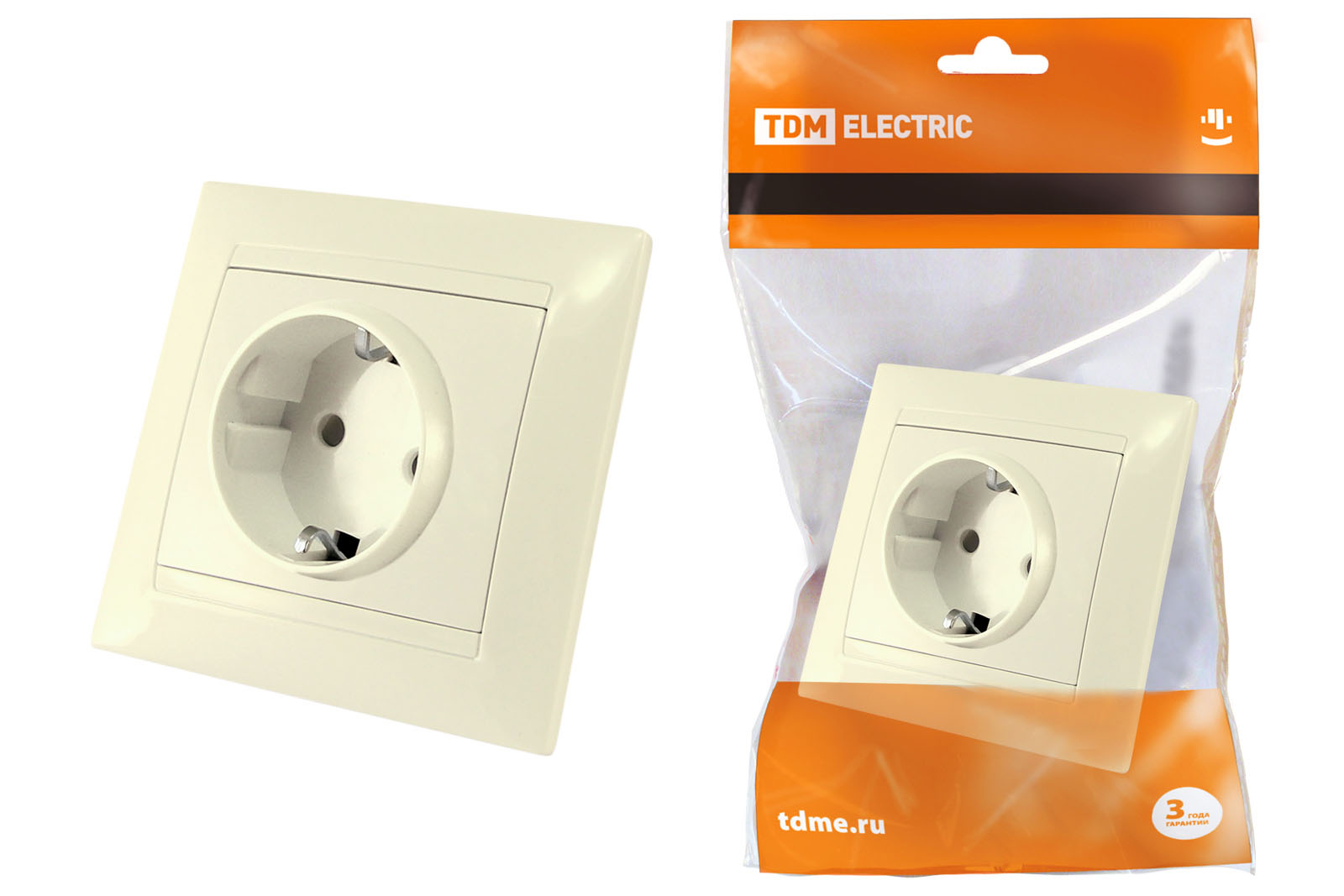 Наименование: Розетка 2П+З 16А 250В с защ. шт. сл. кость "Лама" TDM