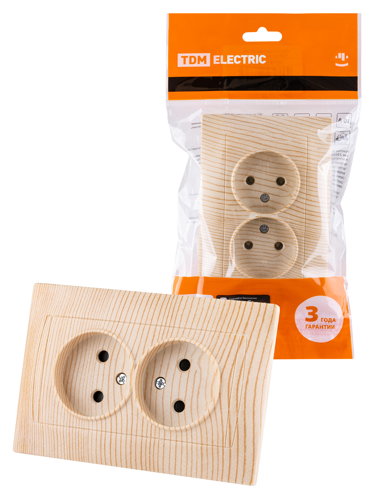 Розетка двойная 2П 10А 250В с защ. шт. сосна "Лама" TDM