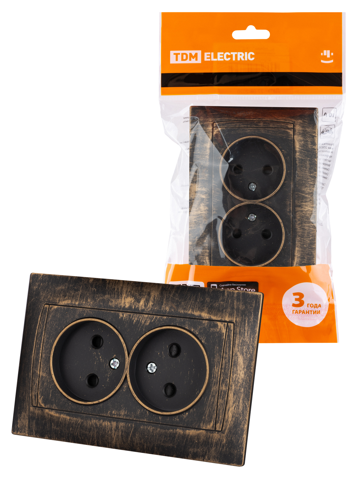Наименование: Розетка двойная 2П 10А 250В с защ. шт. старинная бронза "Лама" TDM