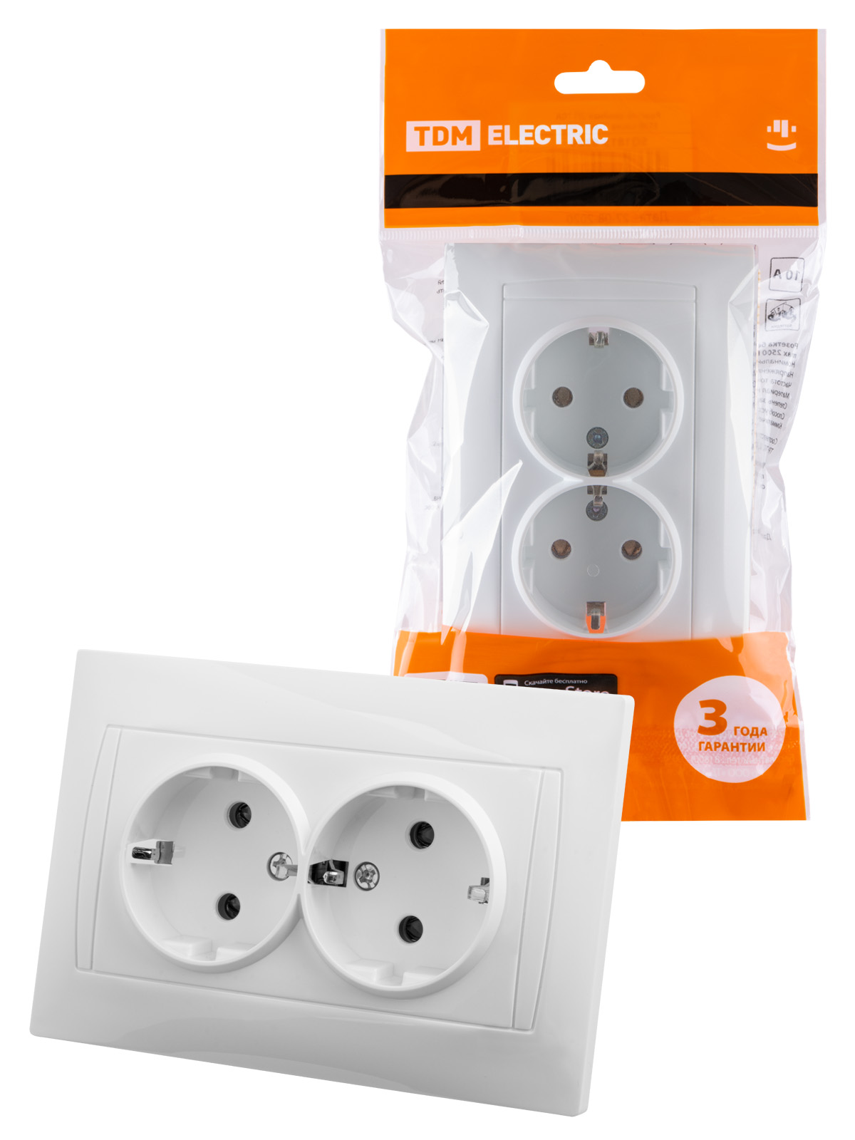 Наименование: Розетка двойная 2П+З 16А 250В белая "Лама" TDM