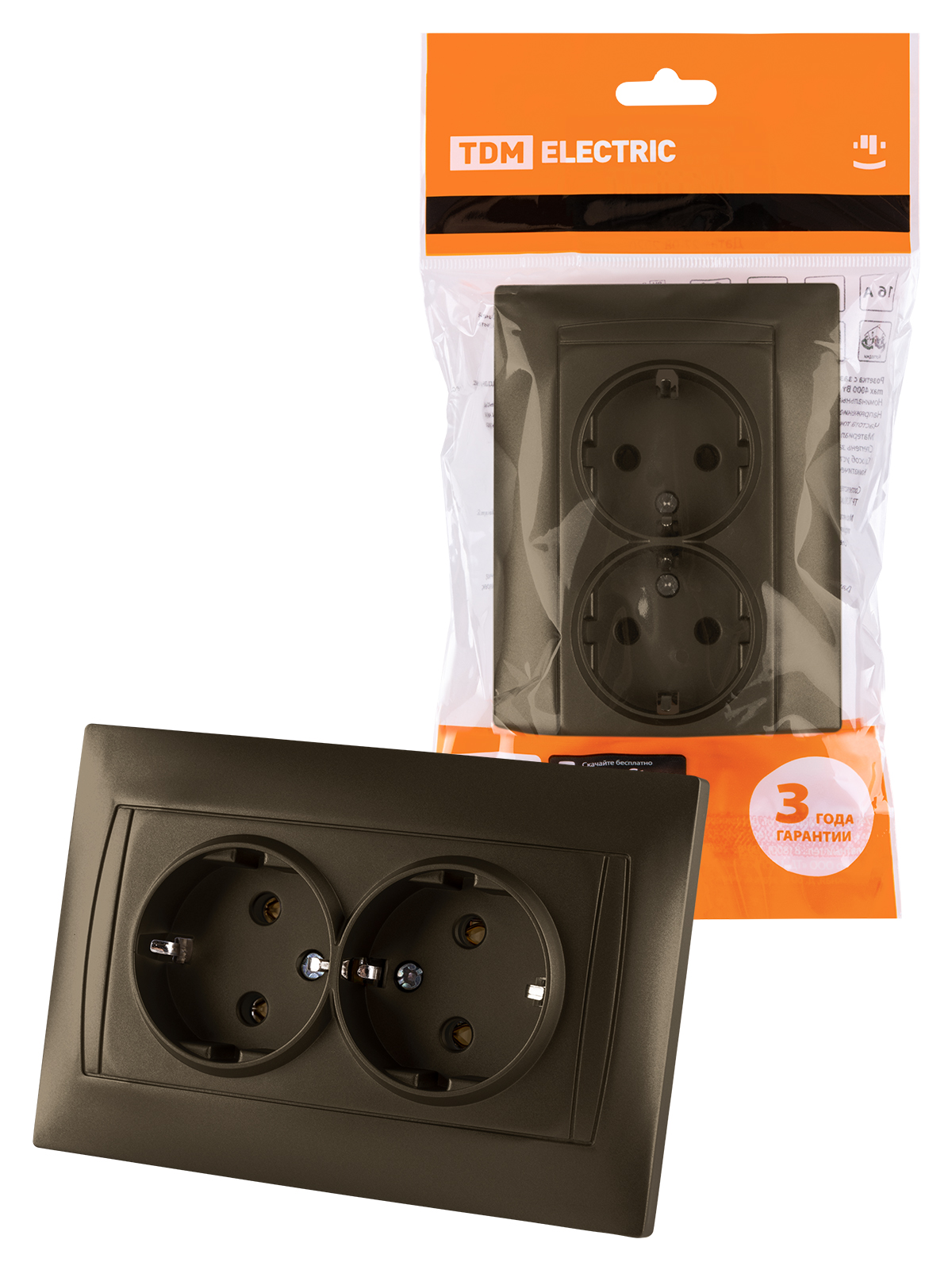 Наименование: Розетка двойная 2П+З 16А 250В  бронза "Лама" TDM