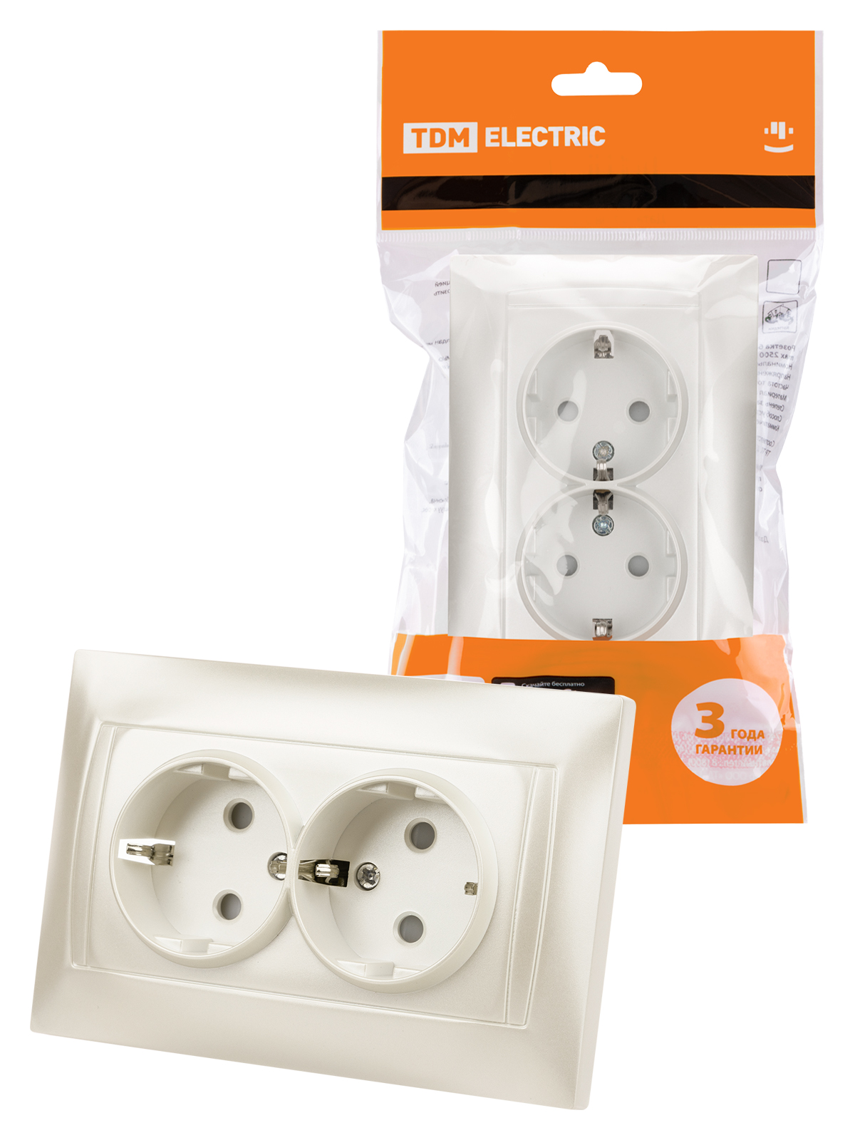 Наименование: Розетка двойная 2П+З 16А 250В с защ. шт. перламутр "Лама" TDM