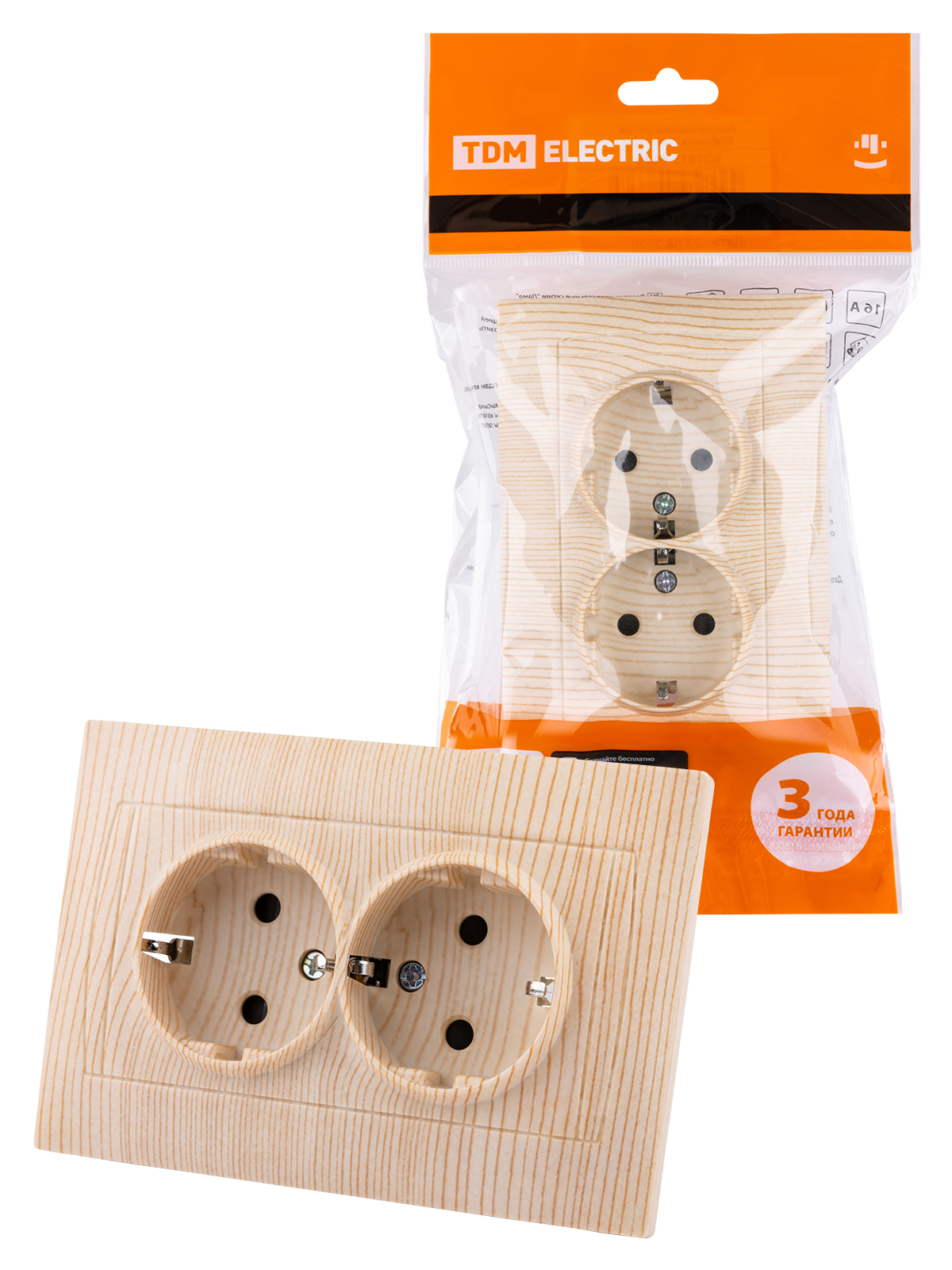 Наименование: Розетка двойная 2П+З 16А 250В с защ. шт. сосна "Лама" TDM