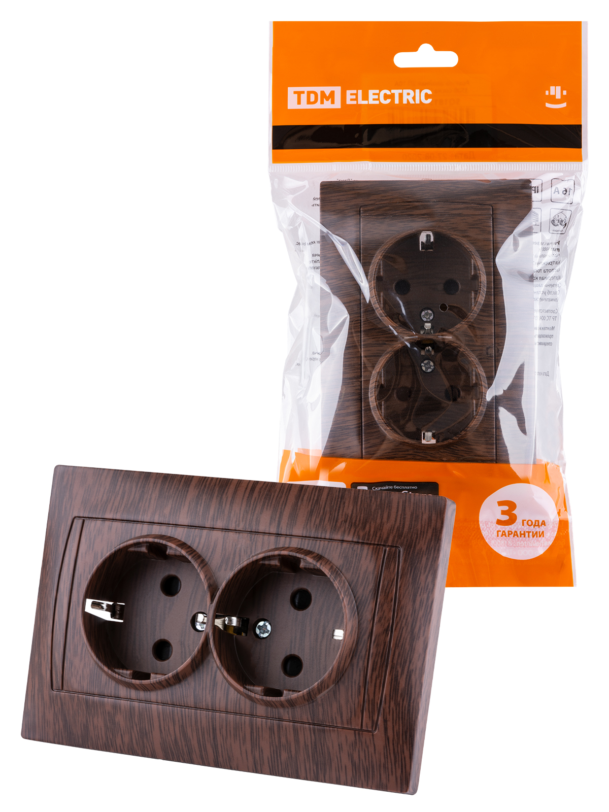 Наименование: Розетка двойная 2П+З 16А 250В с защ. шт. венге "Лама" TDM