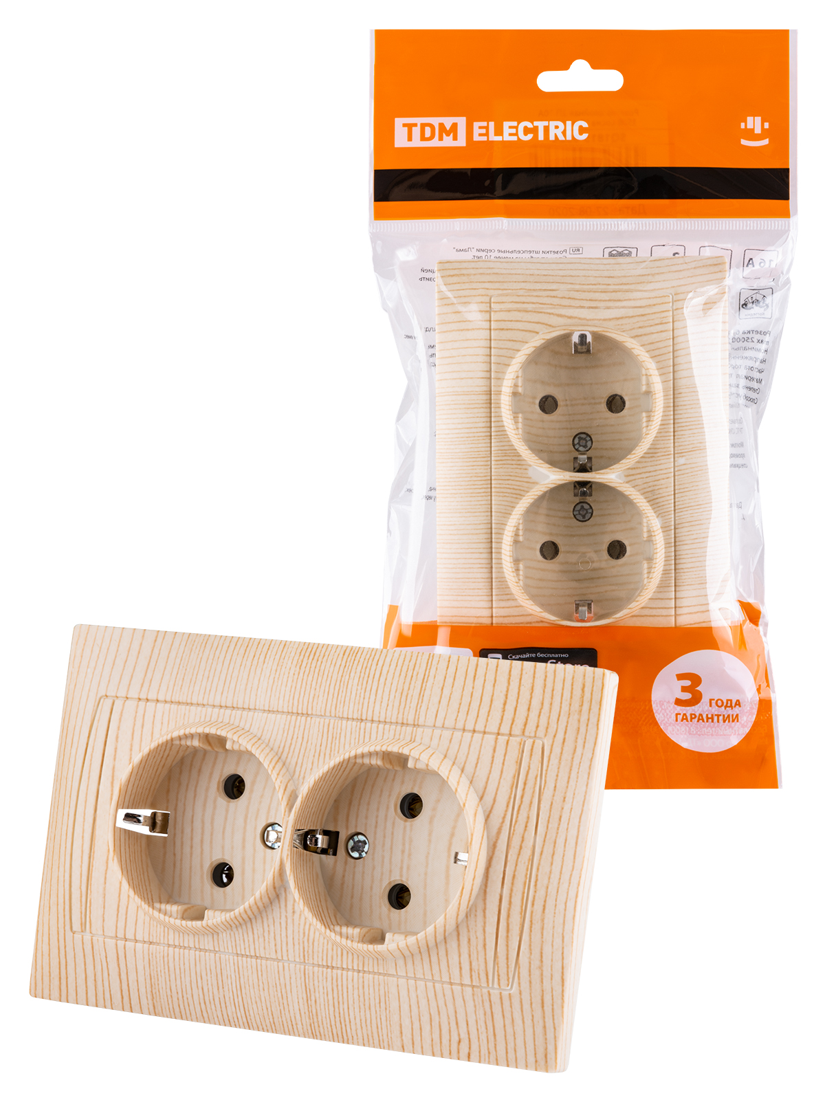 Наименование: Розетка двойная 2П+З 16А 250В сосна "Лама" TDM
