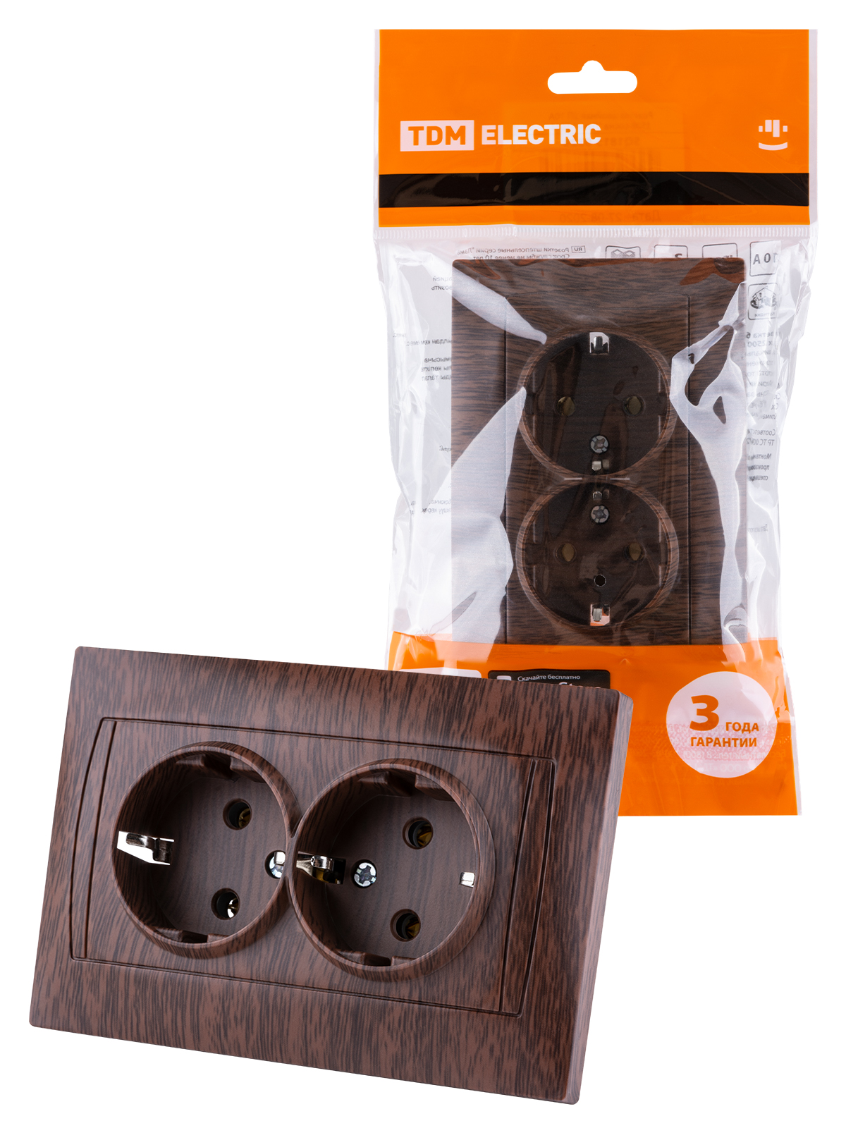 Наименование: Розетка двойная 2П+З 16А 250В венге "Лама" TDM