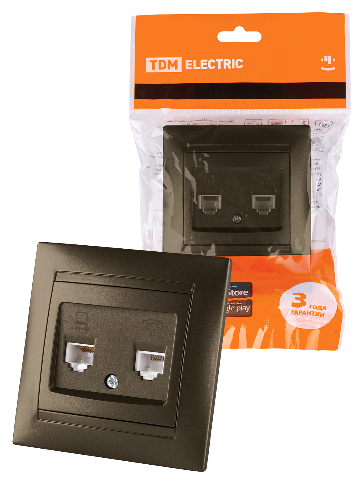 Наименование: Розетка двойная телефонная RJ11  бронза "Лама" TDM