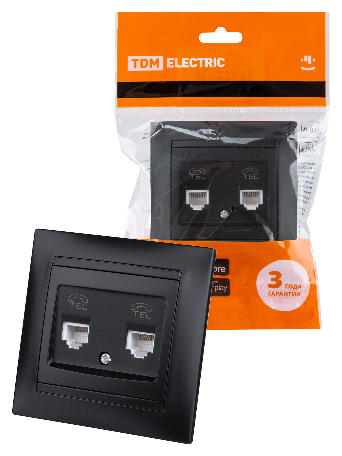 Наименование: Розетка двойная телефонная RJ11 графит "Лама" TDM