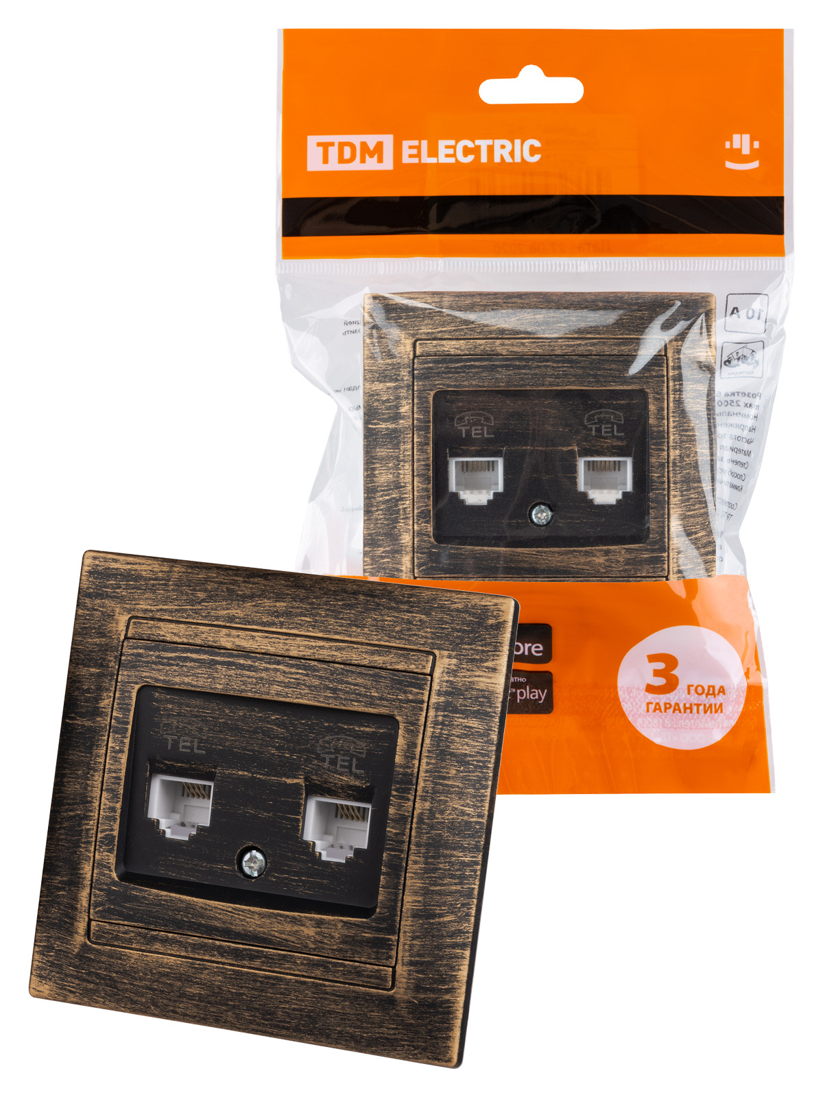 Наименование: Розетка двойная телефонная RJ11 старинная бронза "Лама" TDM