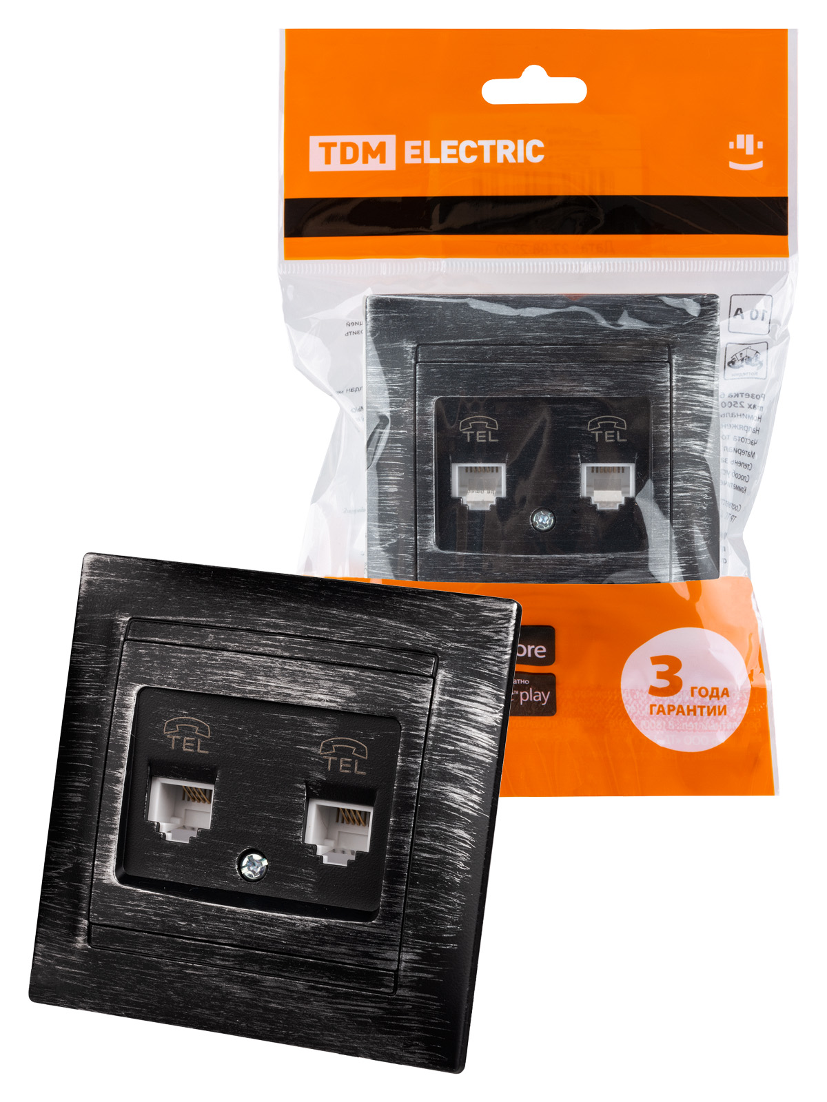 Наименование: Розетка двойная телефонная RJ11 старинное серебро "Лама" TDM