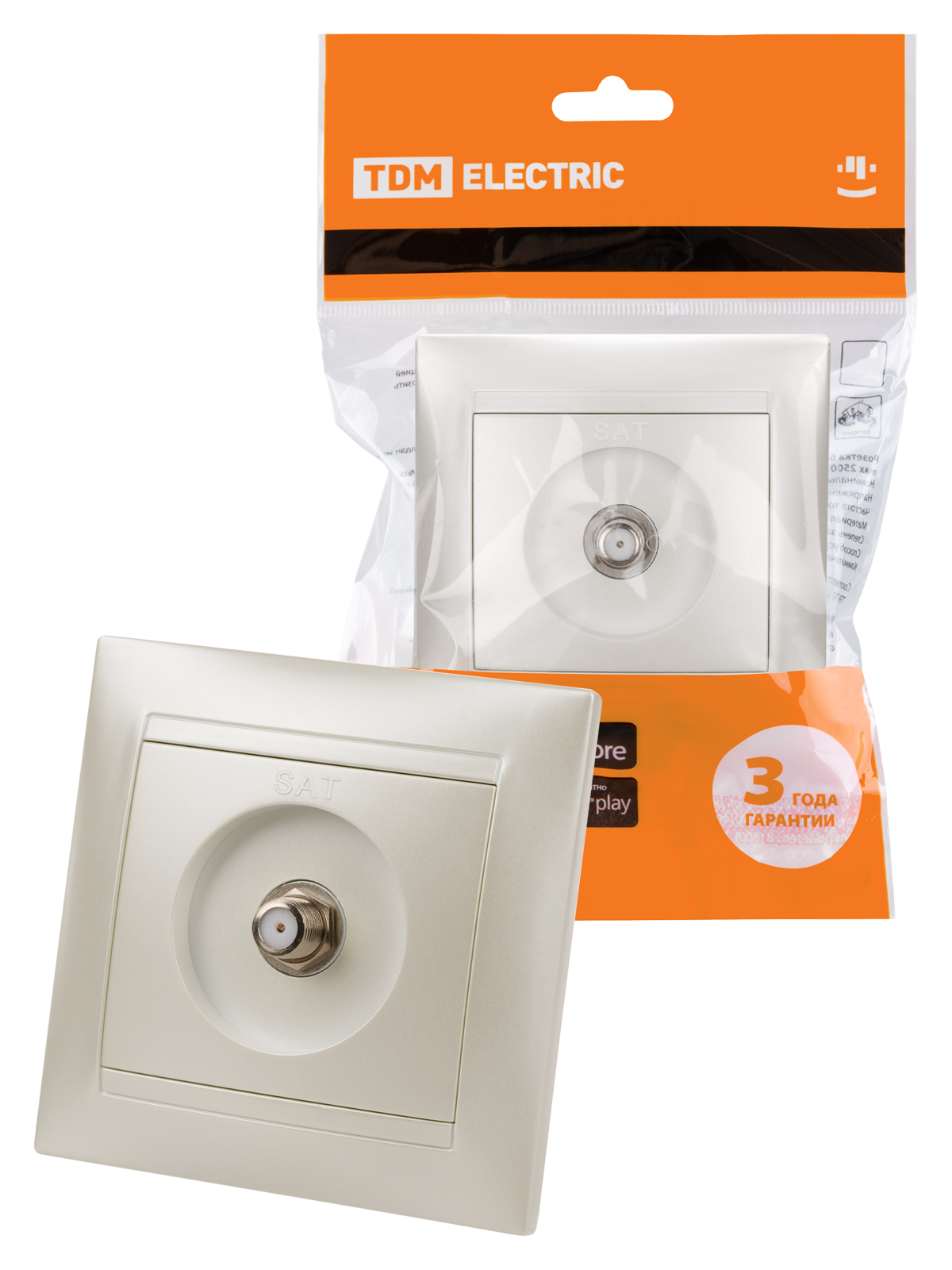 Наименование: Розетка SAT (F-разъем) 0-2400МГц перламутр "Лама" TDM