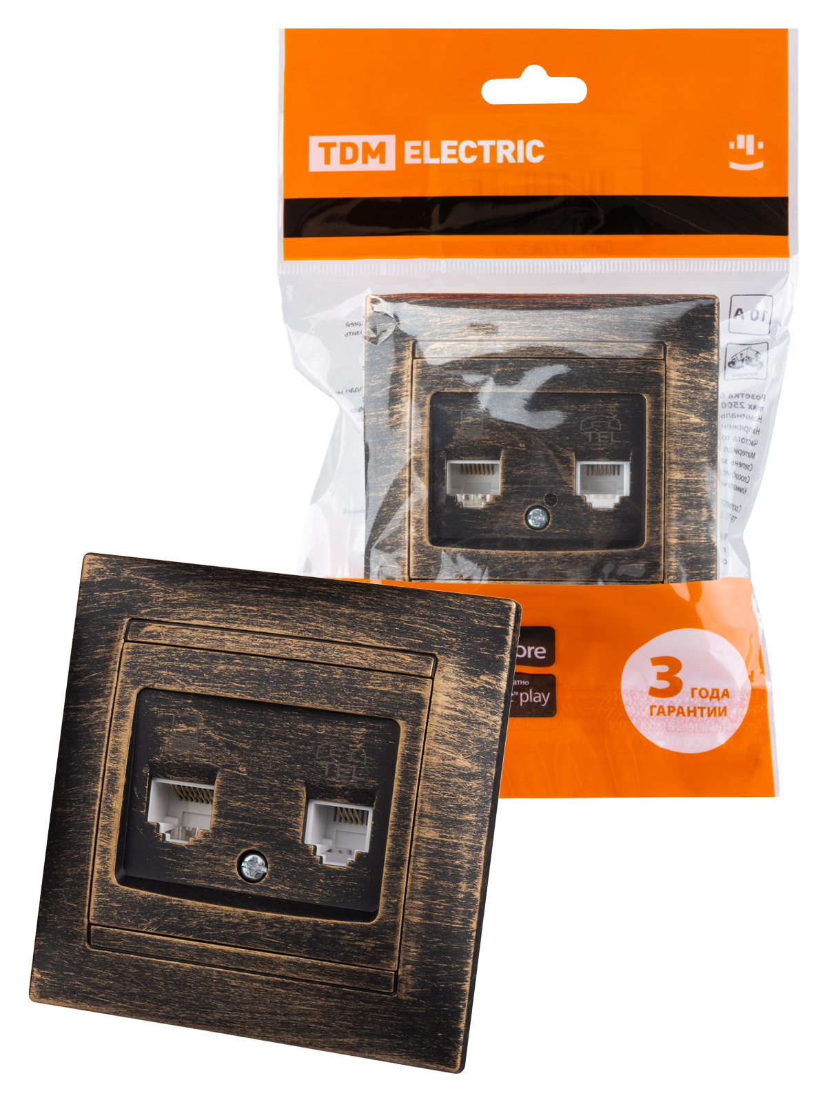 Наименование: Розетка телефонная RJ11 + компьютерная RJ45 старинная бронза "Лама" TDM