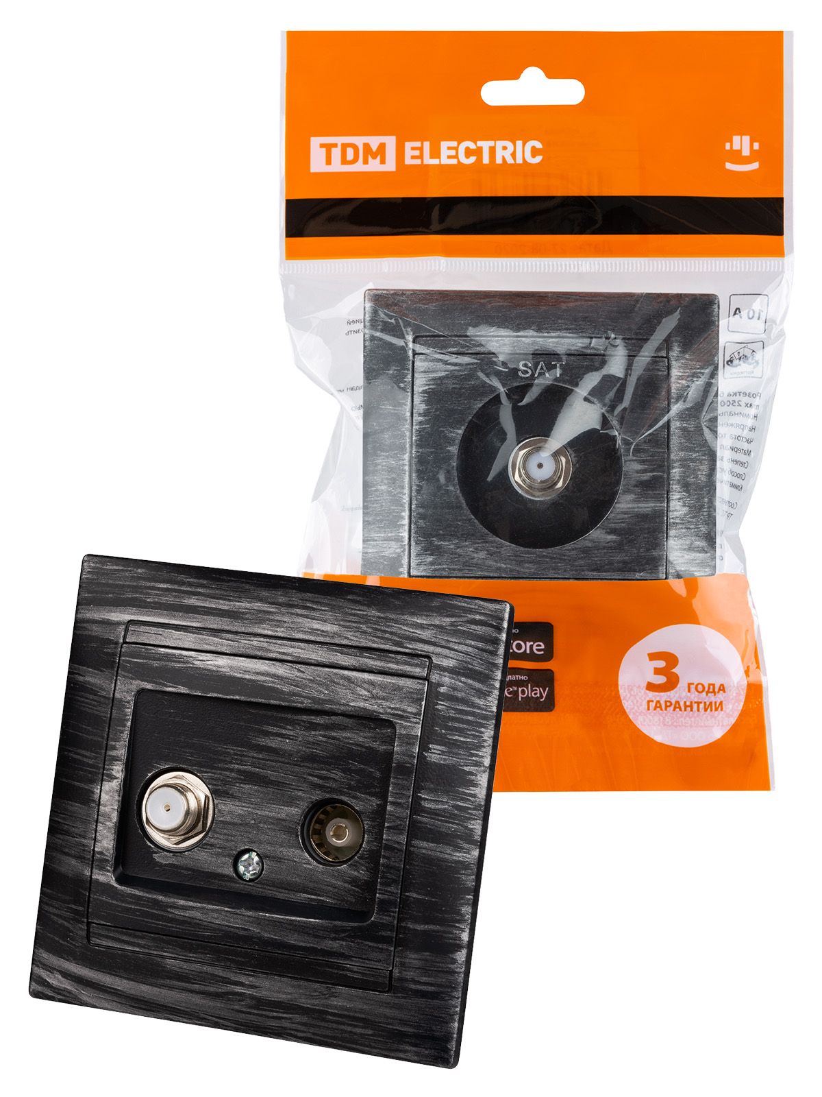 Наименование: Розетка TV ("мама") + SAT (F-разъем) 0-2400МГц старинное серебро "Лама" TDM