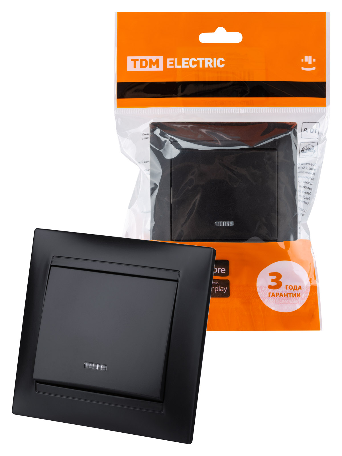 Наименование: Выключатель 1 кл. с подсветкой 10А графит "Лама" TDM