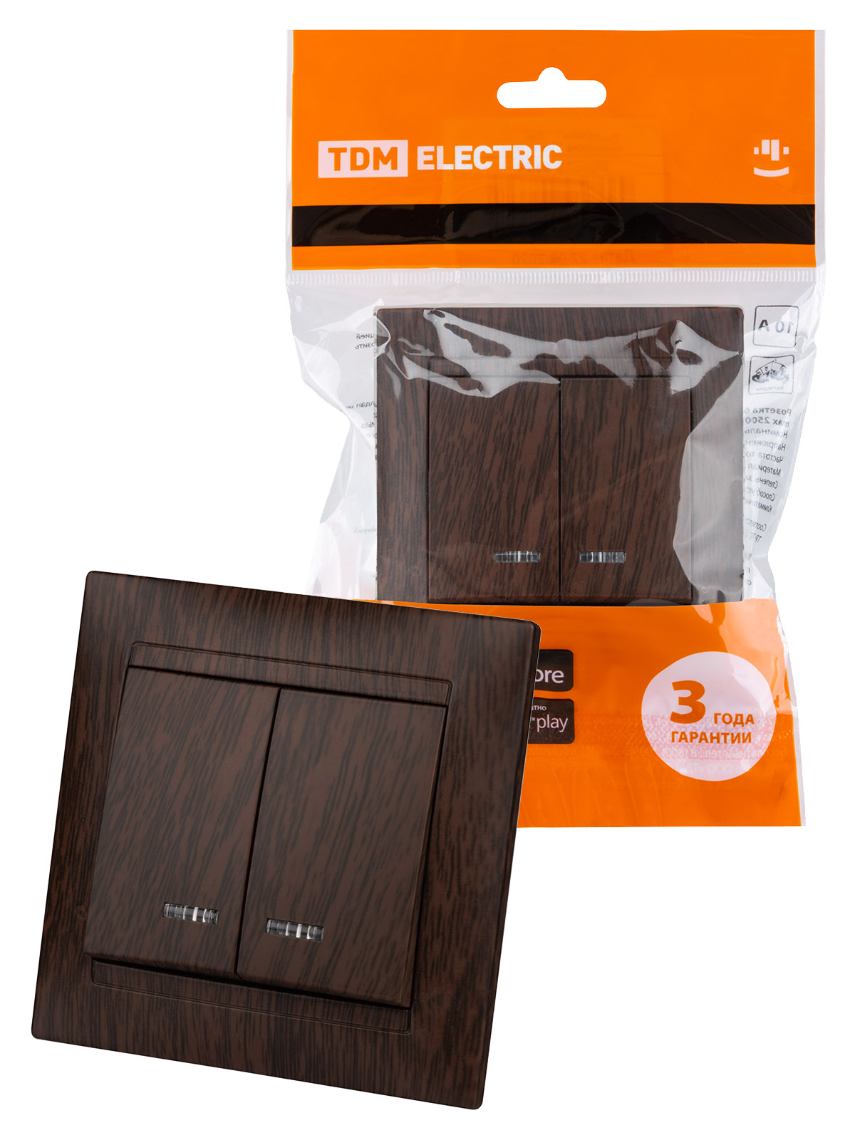 Выключатель 2 кл. с подсветкой 10А венге "Лама" TDM