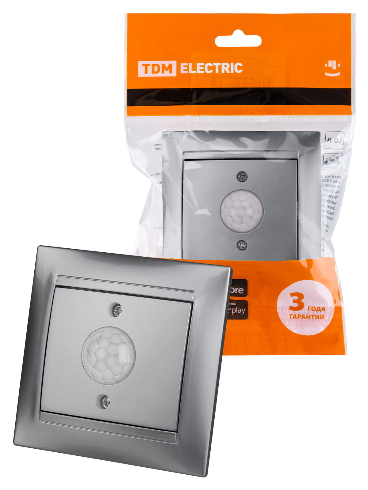 Наименование: Выключатель с датчиком движения 1А серебр.металлик "Лама" TDM