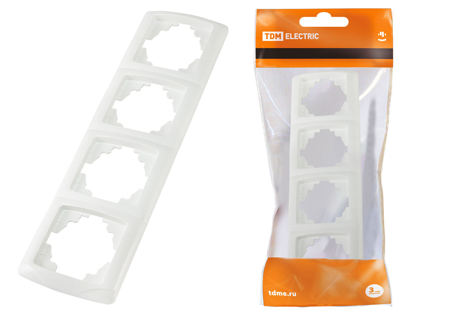 Наименование: Рамка 4-х постовая вертикальная белая "Онега" TDM