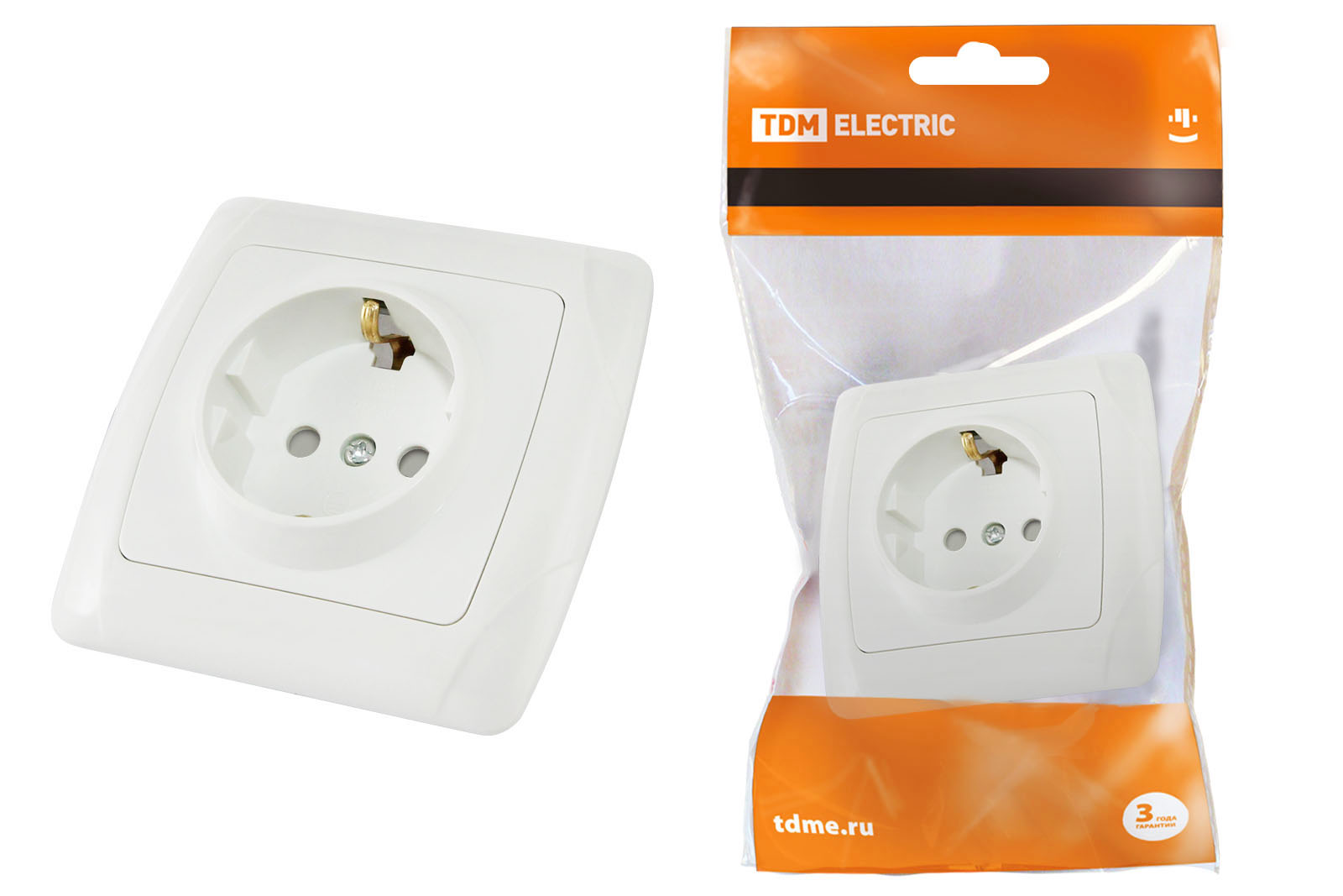 Наименование: Розетка 2П+З 16А 250В с защ. шт. белая "Онега" TDM