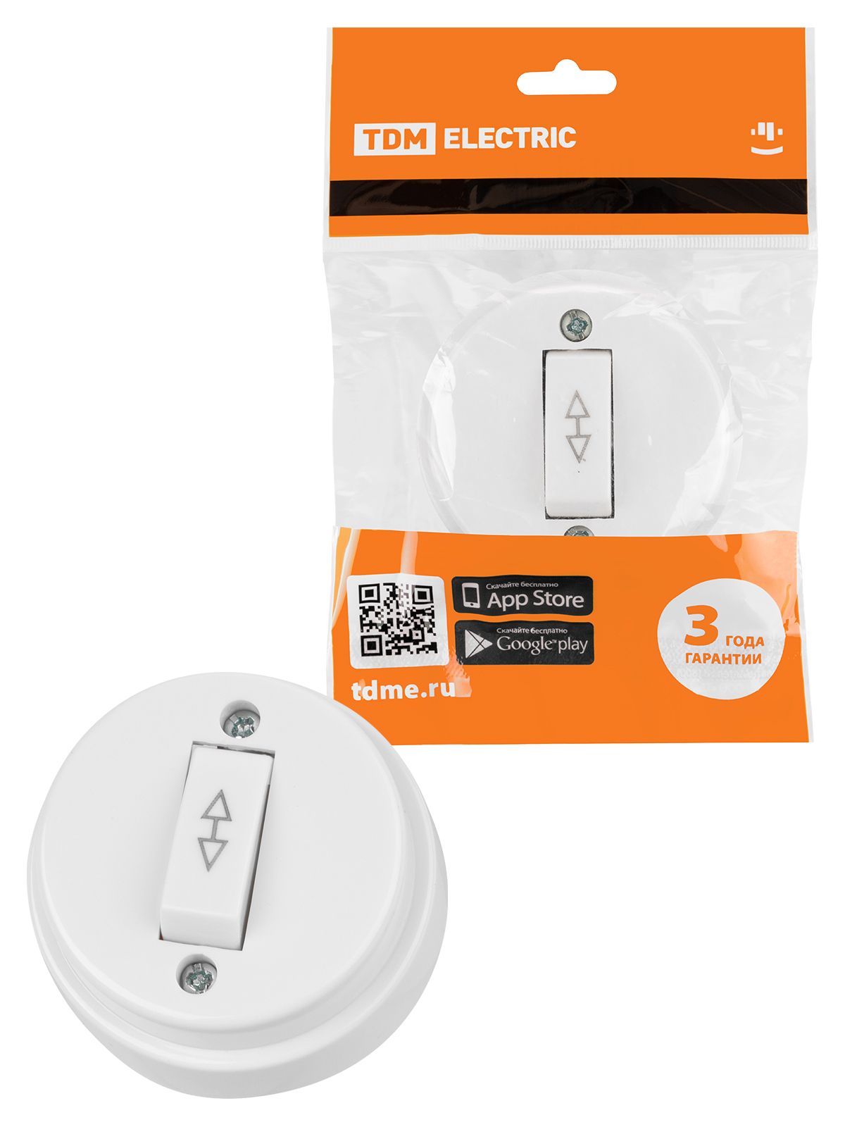 Наименование: Переключатель на 2 направления 1-кл. открытой установки IP20 10А белый "Ретро" TDM
