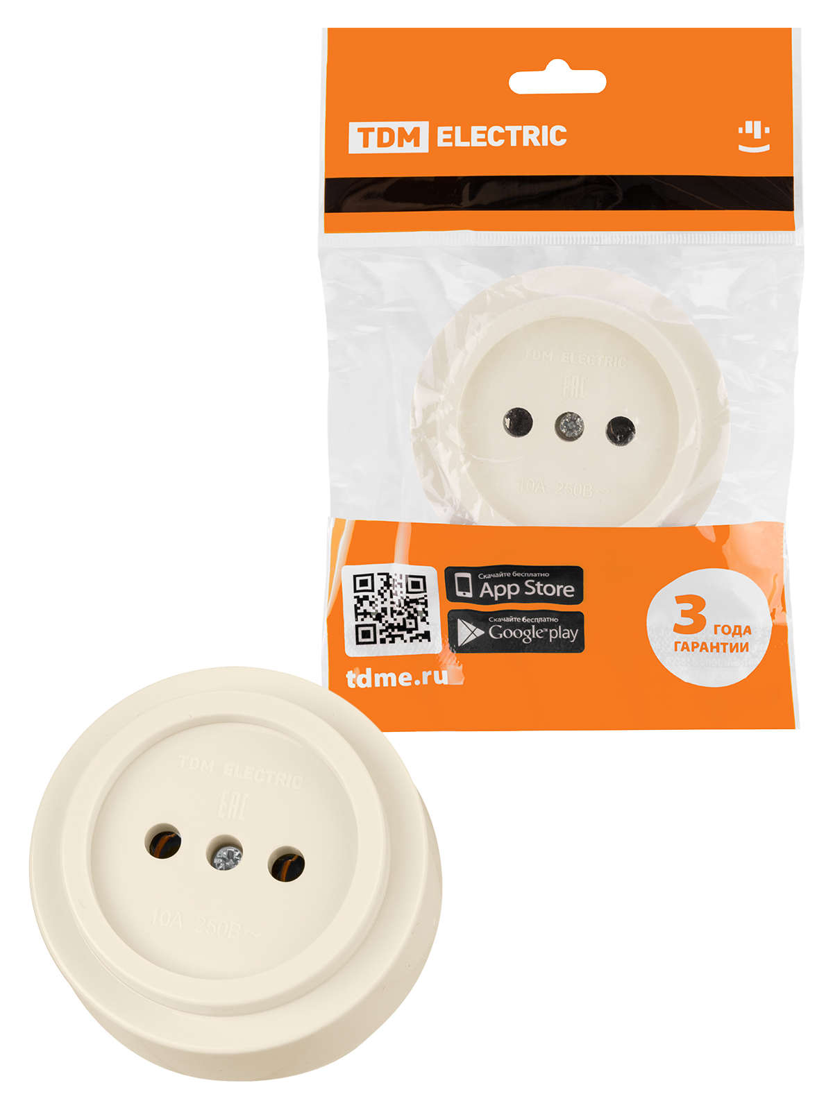 Наименование: Розетка 2П открытой установки IP20 10А сл. кость "Ретро" TDM