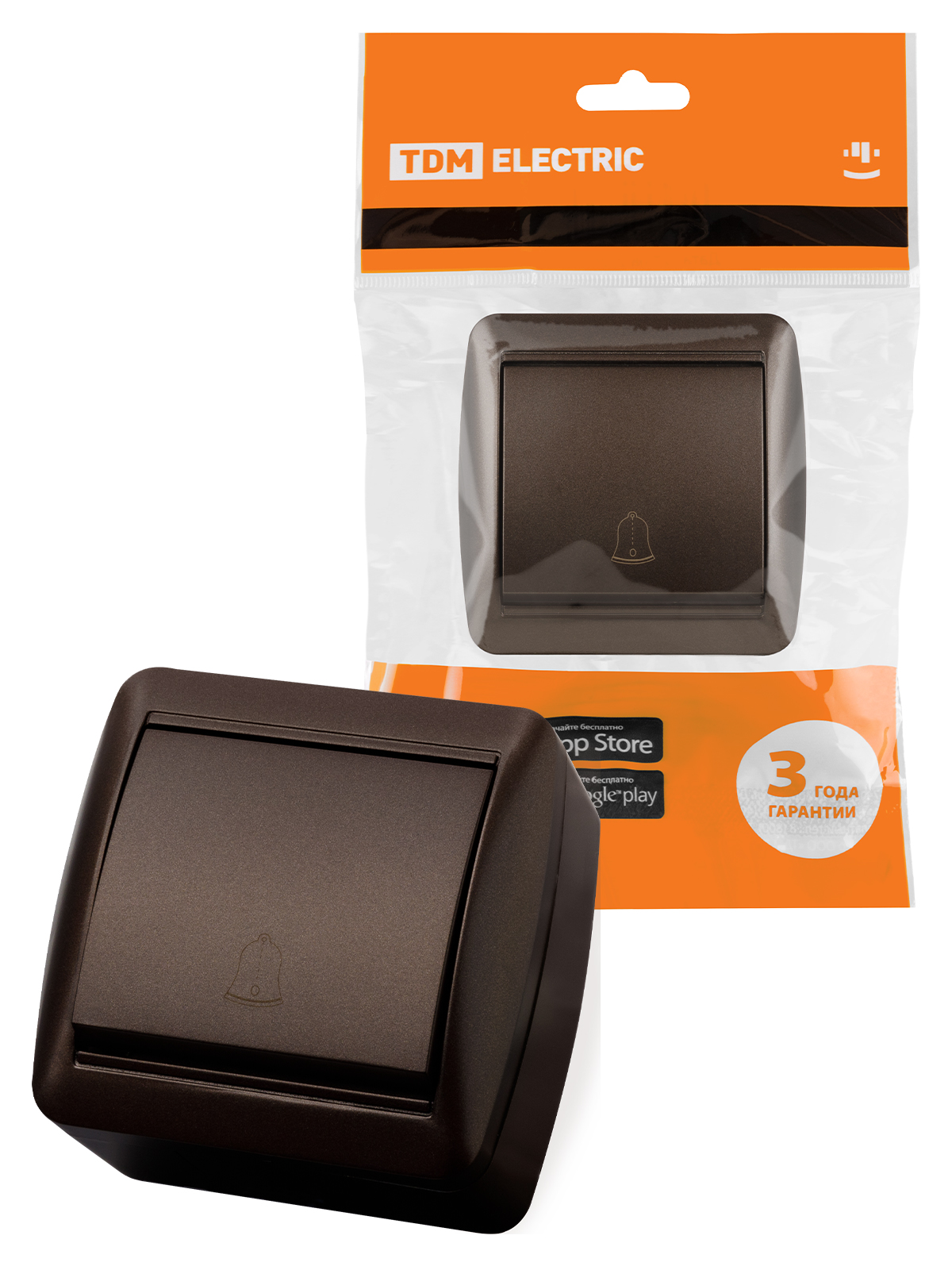 Наименование: Кнопка звонковая открытой установки IP44 6А шоколад "Селигер" TDM