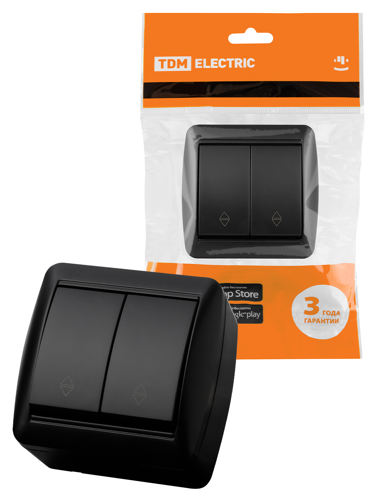 Наименование: Выключатель на 2 направления 2-кл. открытой установки IP44 10А графит "Селигер" TDM