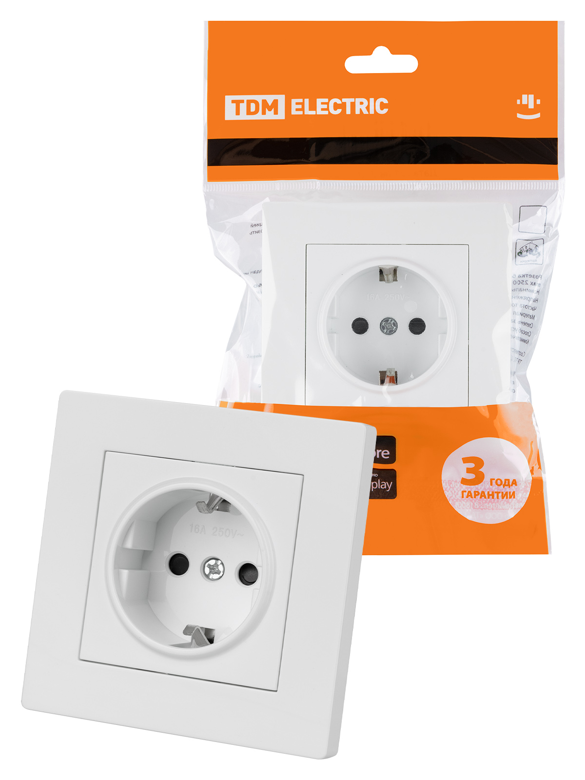 Наименование: Розетка 2П+З 16А 250В с защ. шт. белая "Сенеж" TDM